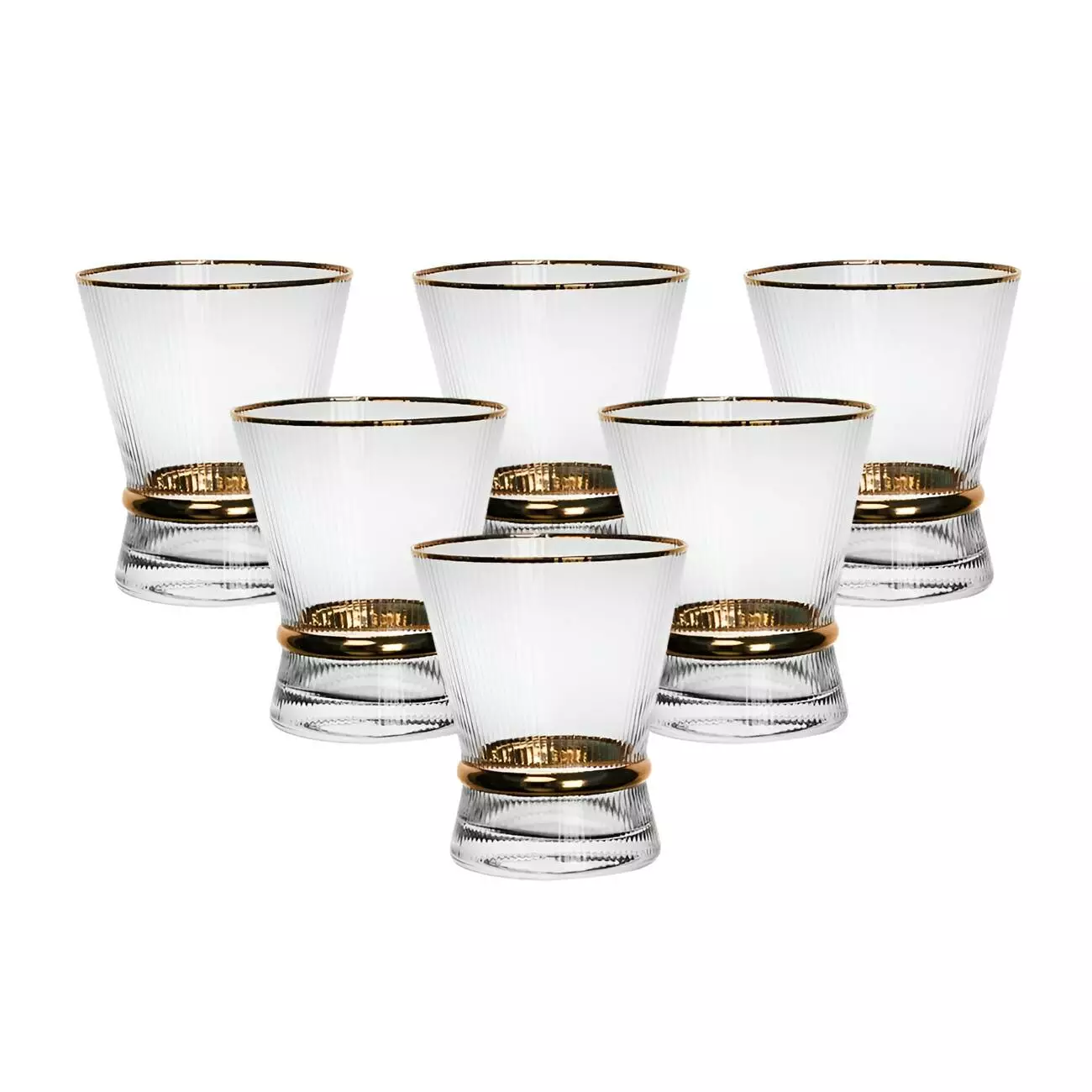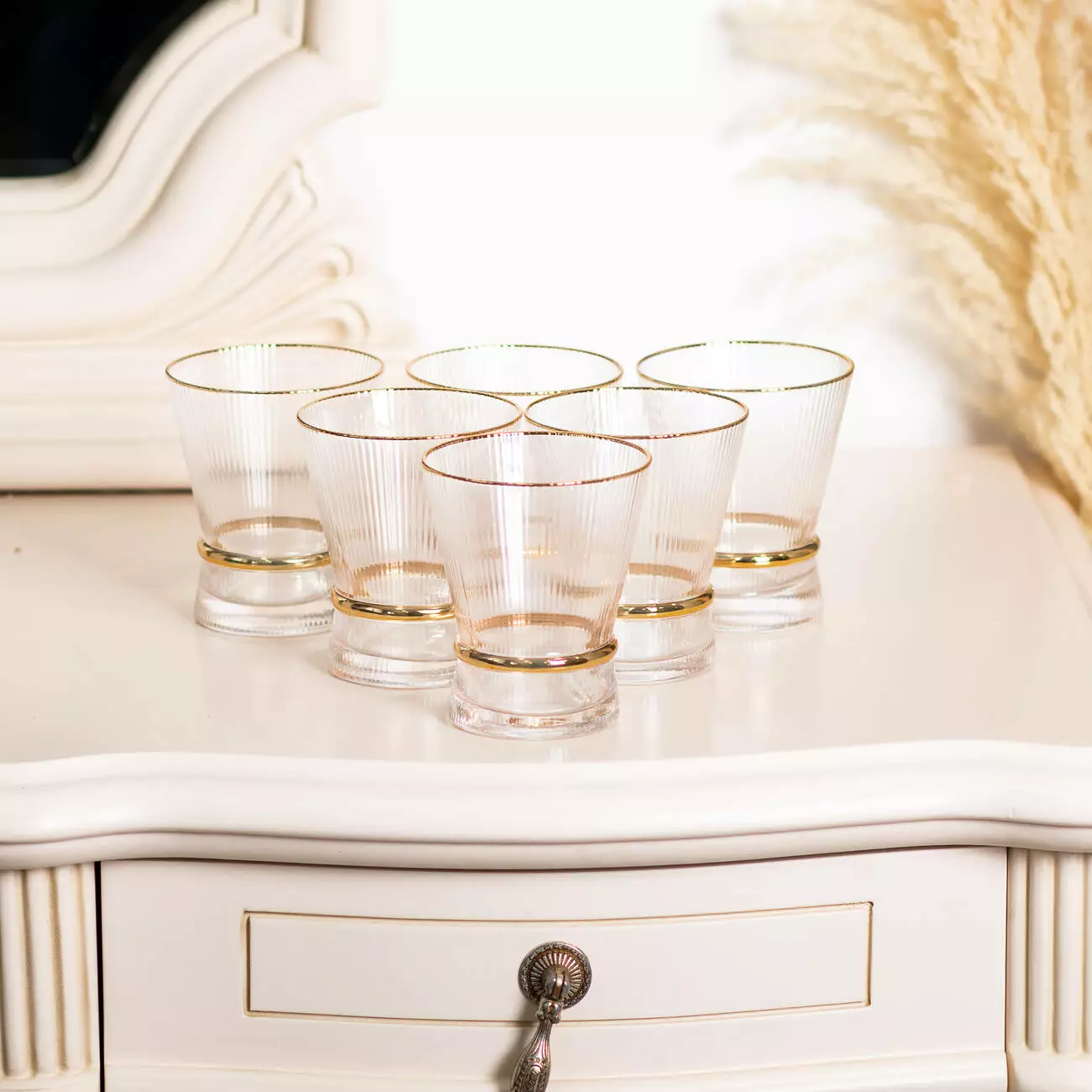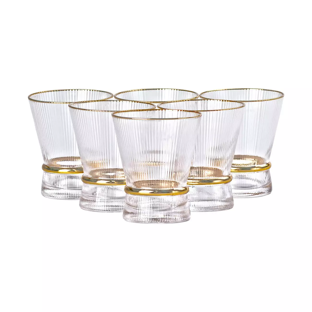 Набір склянок Stunning — це поєднання елегантності та функціональності, яке зробить ваш стіл ще привабливішим. Кожна склянка має місткість 300 мл, що ідеально підходить для подачі води, соків або коктейлів. Прозоре скло підкреслює кольори напоїв, а золотий обідок додає розкішного акценту, створюючи атмосферу святковості.