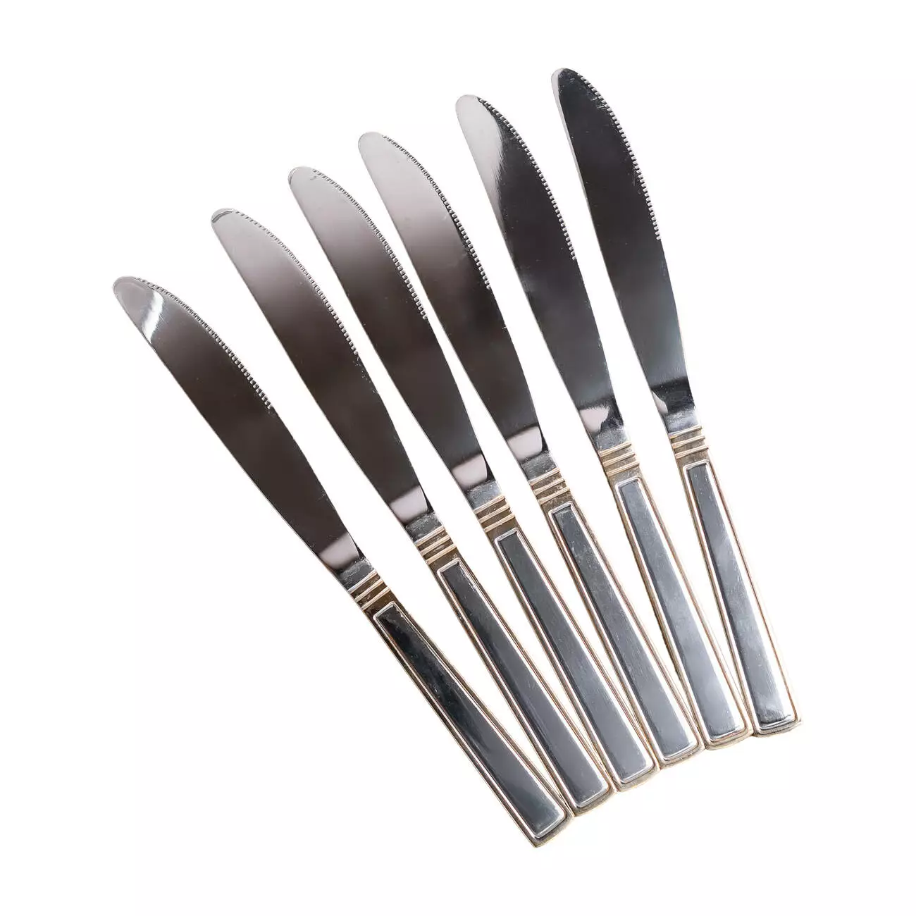 Набір столових ножів 6 штук з облямівкою, хром із золотом