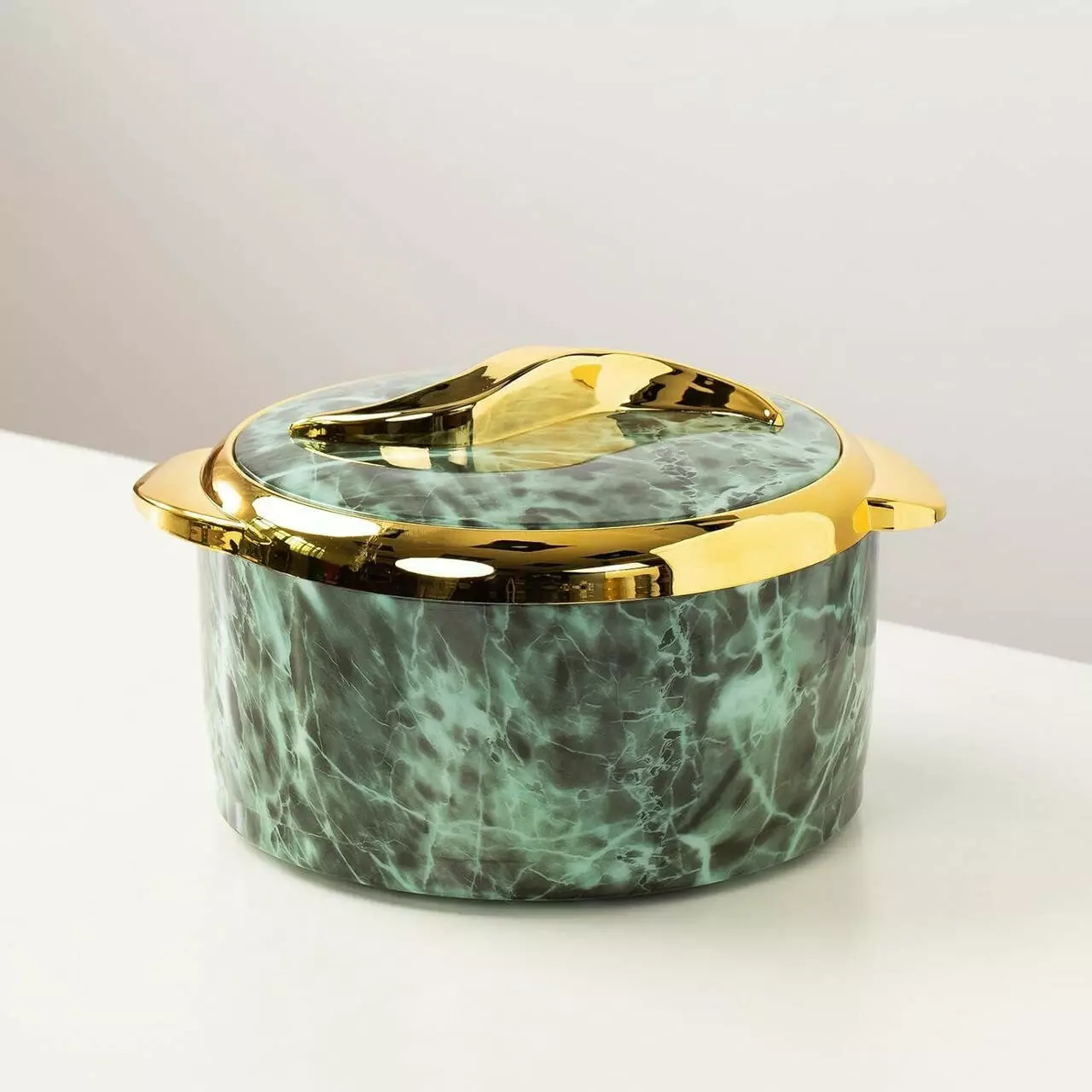 мармуровим візерунком і декоративною золотистою окантовкою надає