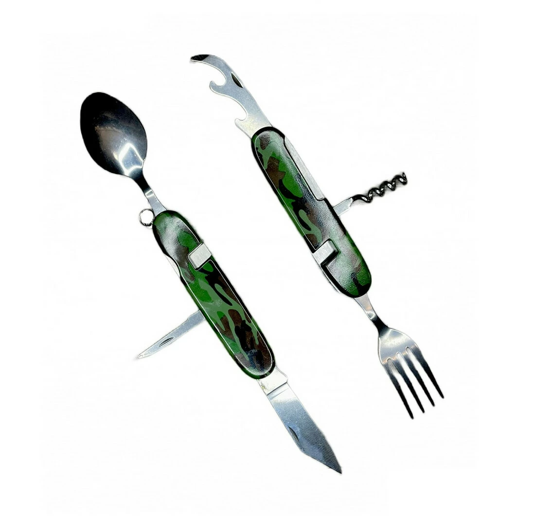 Мультитул похідний ложка +вилка + штопор + підніжк сталеві