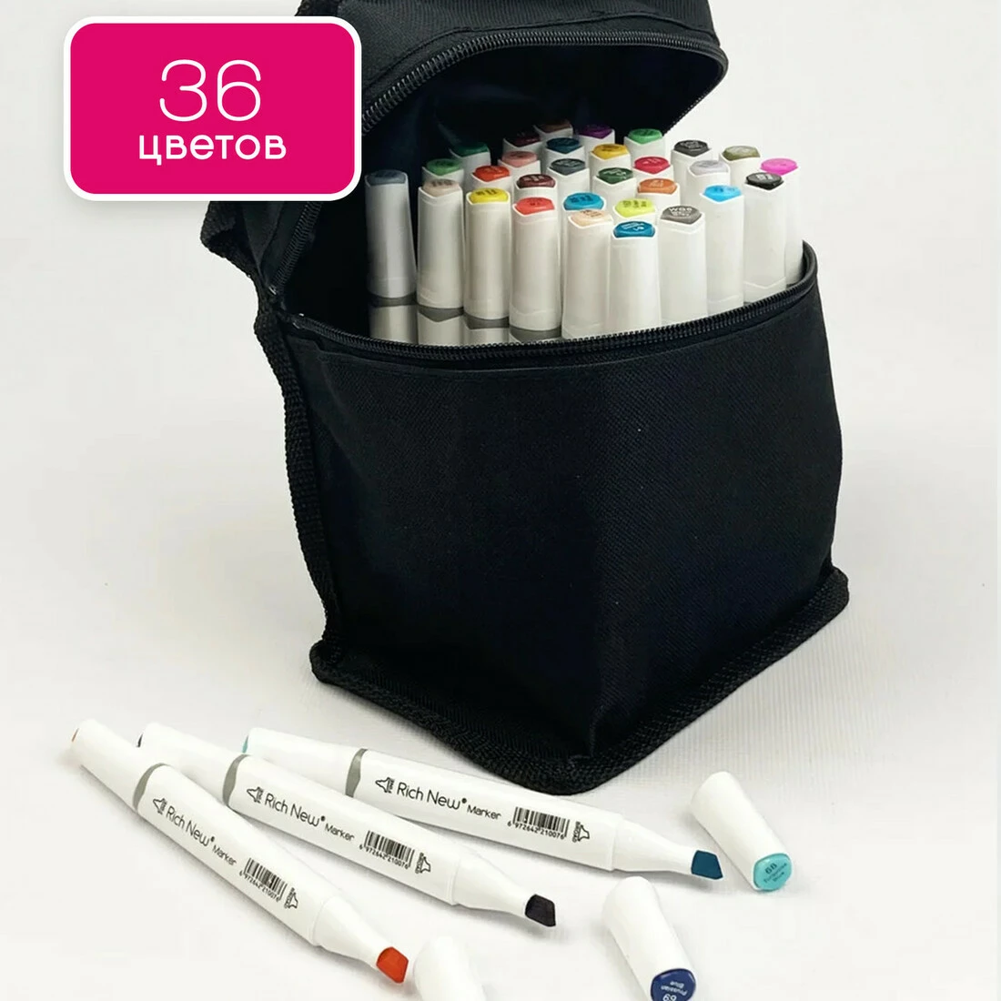 36 маркери різних кольорів.