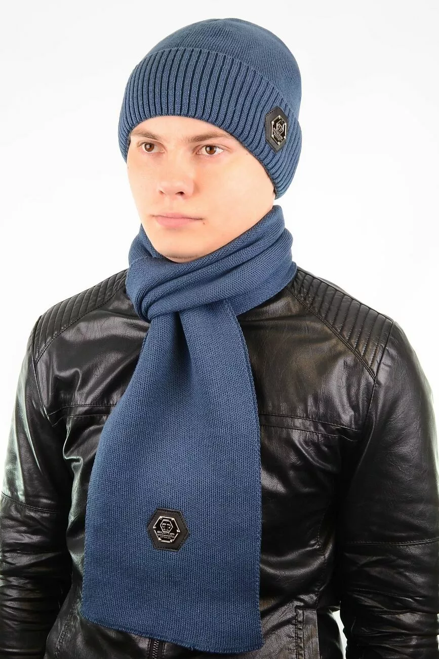 Однотонный мужской набор - состоит из шарфа и стильной шапки.