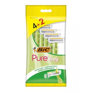 Одноразовые бритвы BIC Pure 3 Lady разработаны специально для женщин. В набор входит 6 бритвенных станков с тремя лезвиями.