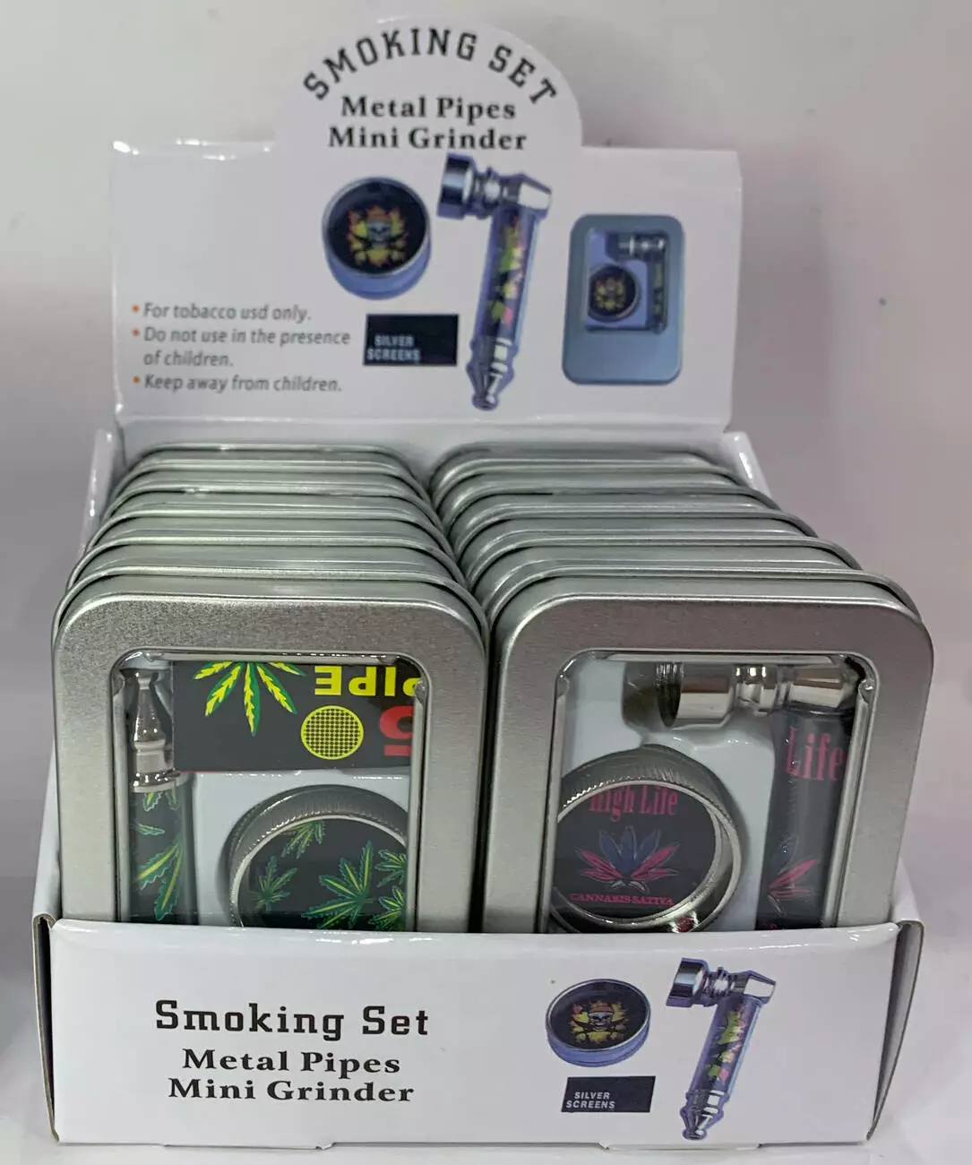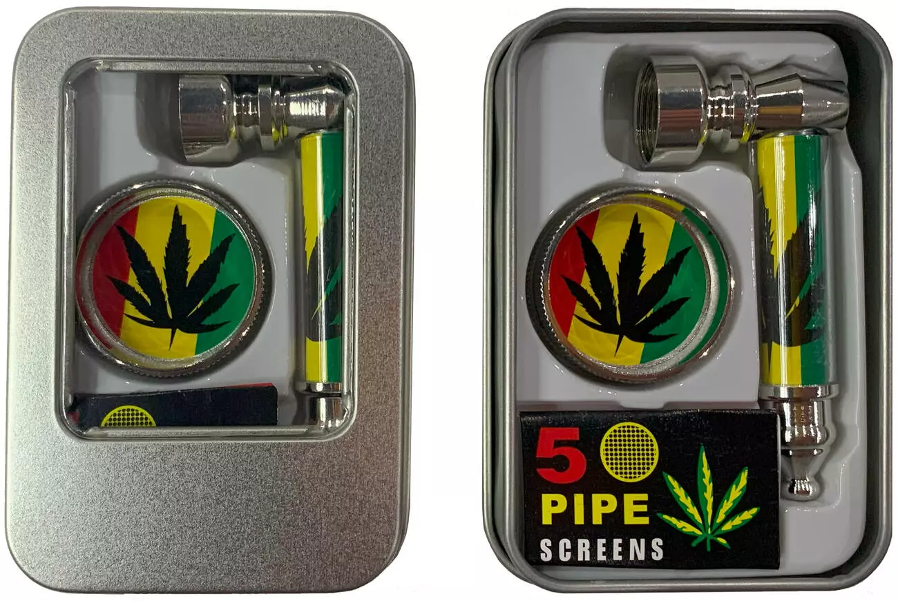 Набор для курения 3в1 'Legalize ☘️' Гриндер, Трубка, Сетки HL-553-2