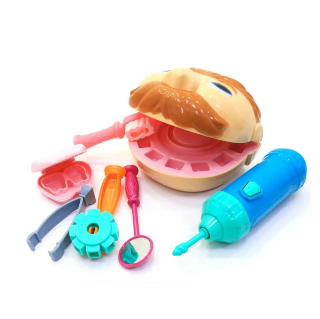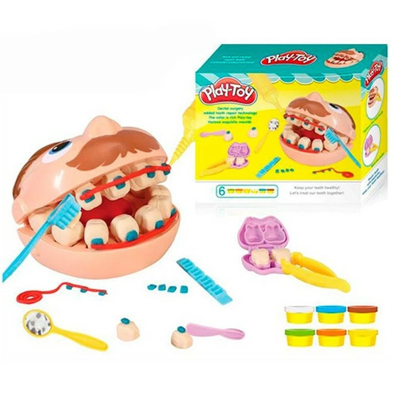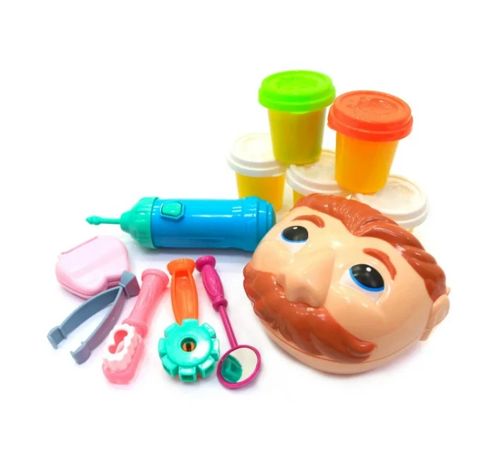 Забавный Мистер Зубастик обращает на себя внимание не только широкой улыбкой, которую необходимо привести к совершенству, но и очарует своим радушием. Итак, у мистера Зубастика болят зубы – он пришел к Вам лечиться! Помогите ему! Для этого есть три баночки с пластилином разного цвета для лепки пломб, инструменты стоматолога из пластика (есть даже работающая бормашина, издающая характерные звуки), а также глава мистера Зубастика, на которой, собственно, Вы и сможете оттачивать свои навыки! Пластиковый пациент состоит из двух частей – верхней и нижней челюстей. Бормашина работает от батареек. Превосходное качество набора. Экологические материалы, безопасные для детского здоровья.