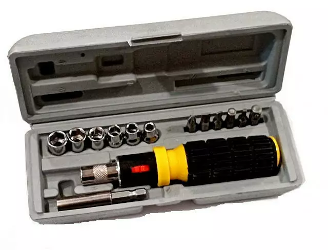 Набор инструментов отвёртка + биты + головки / JS TOOLS 15-piece bit and socket set/ KE16