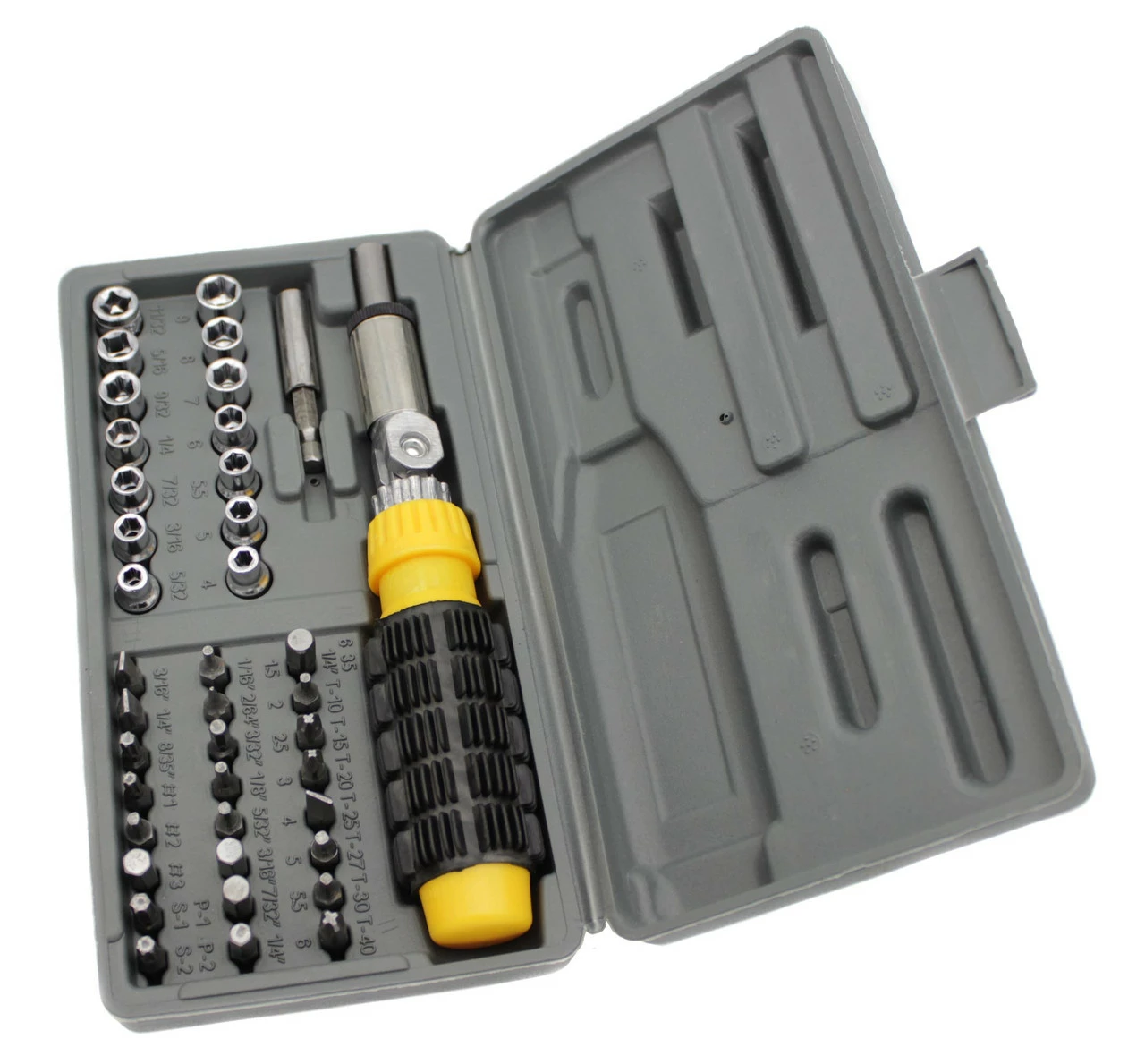 • 14 шт. 1/4 "Dr. SAE разъем: 5/32, 3/16, 7/32, 1/4, 9/32, 5/16, 11/32, 3/8, 13/32, 7/16, 15/32, 1/2, 17/32, 9/16"