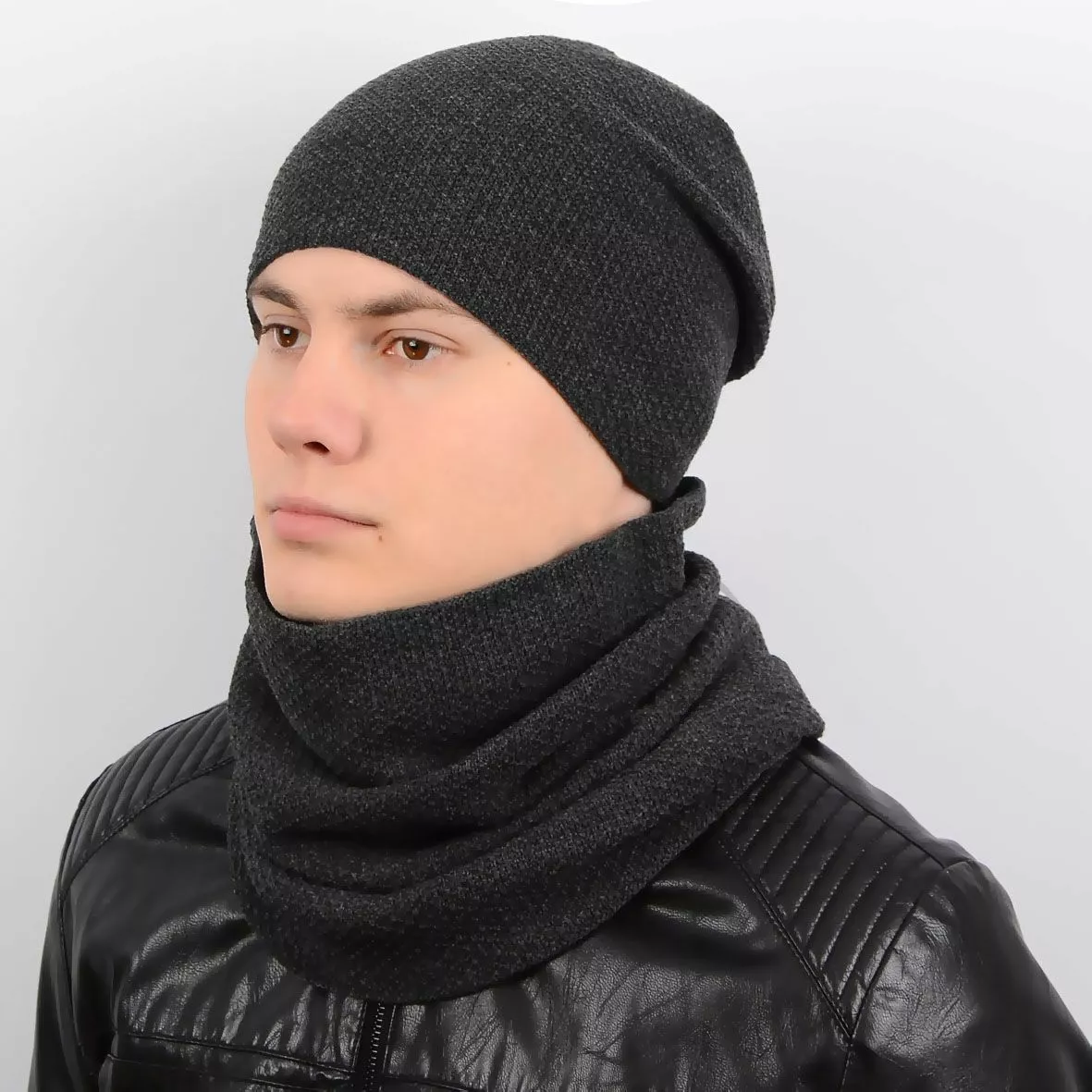 Однотонный мужской набор - состоит из шарфа-хомута и стильной