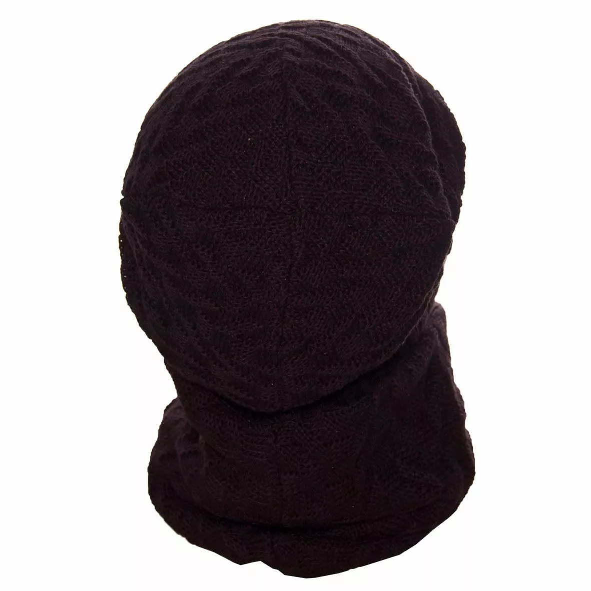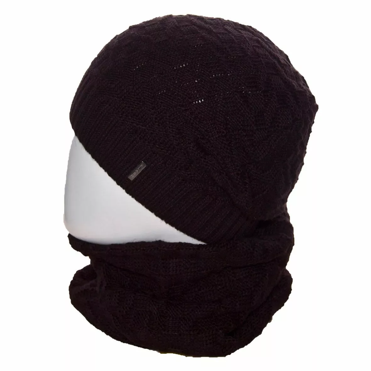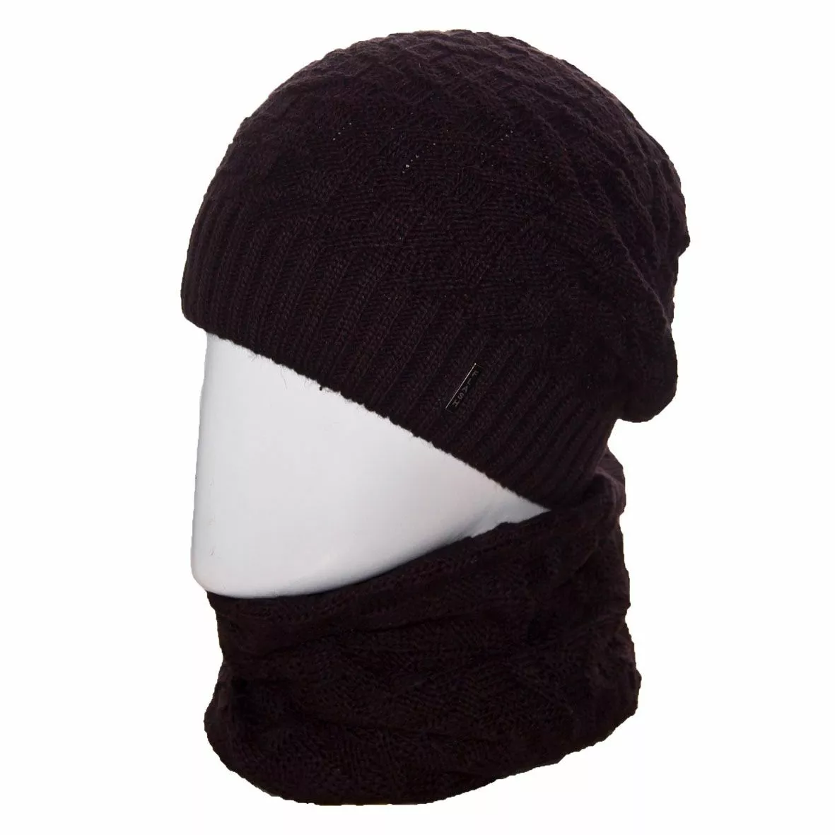 Вязаный однотонный мужской комплект состоит из удлиненной шапки, с