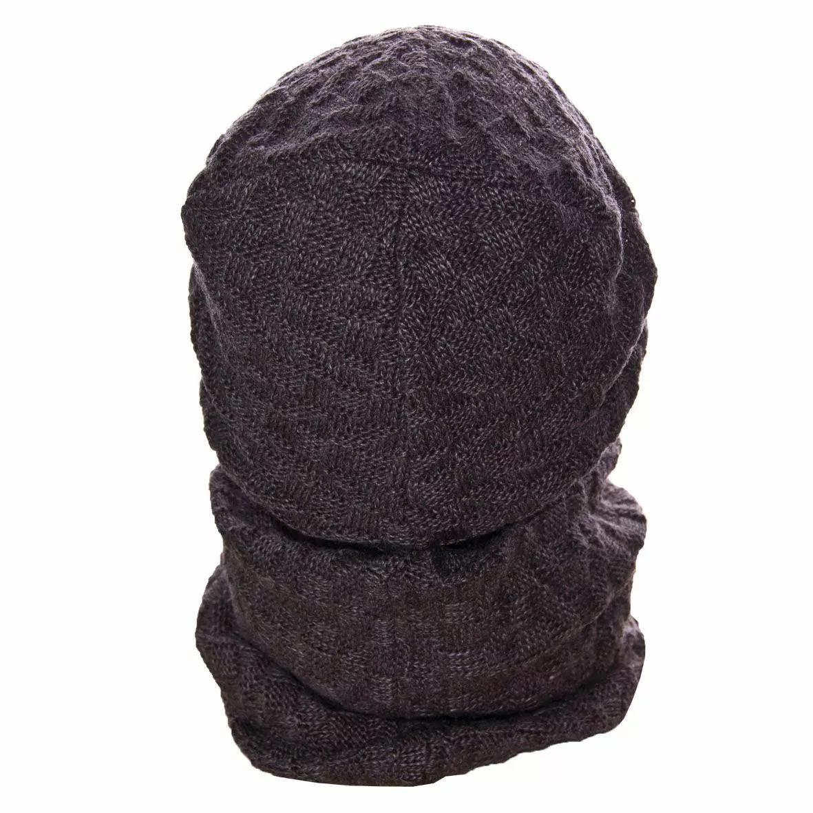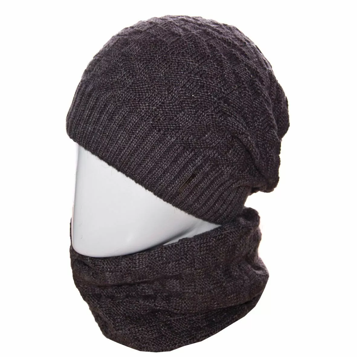 Вязаный однотонный мужской комплект состоит из удлиненной шапки, с