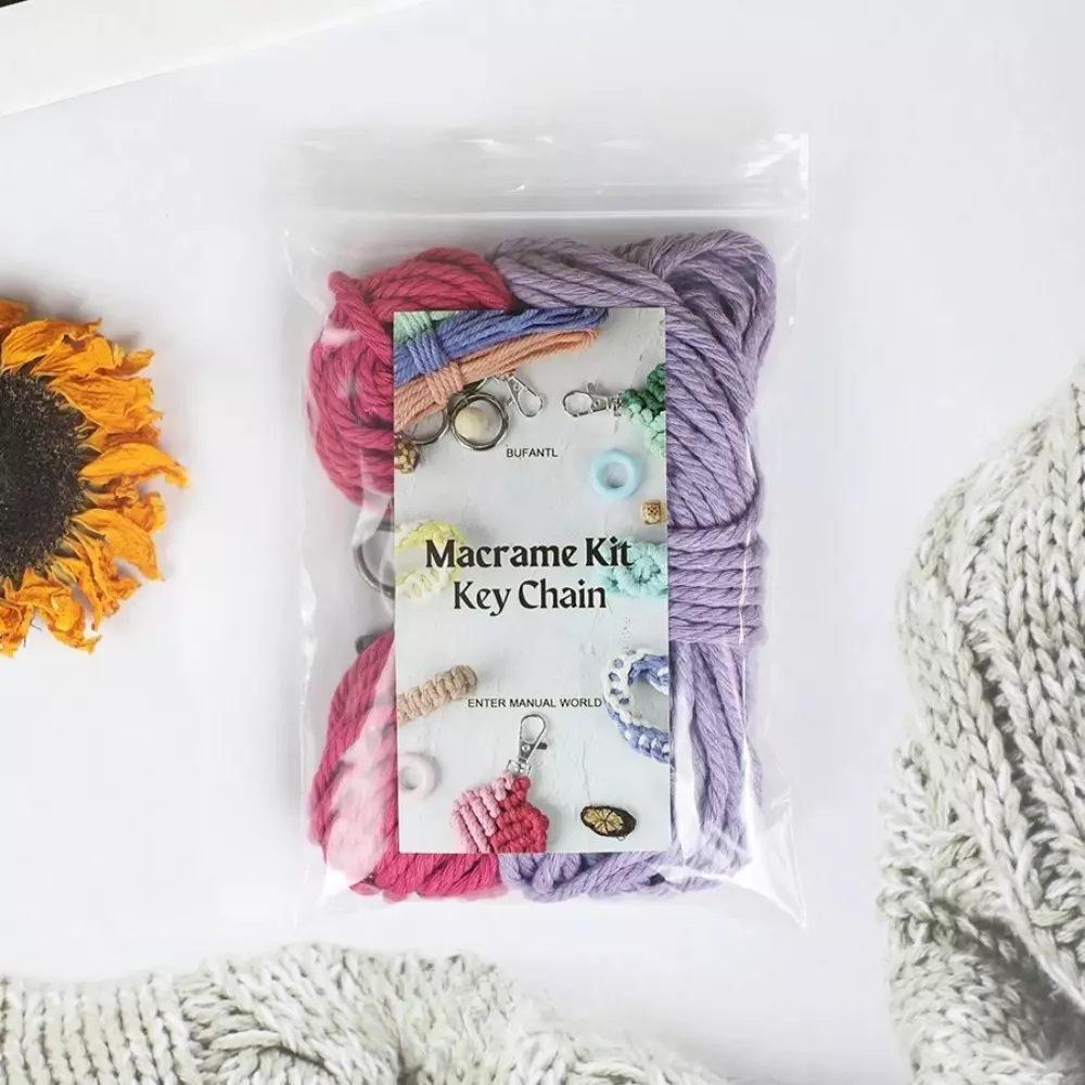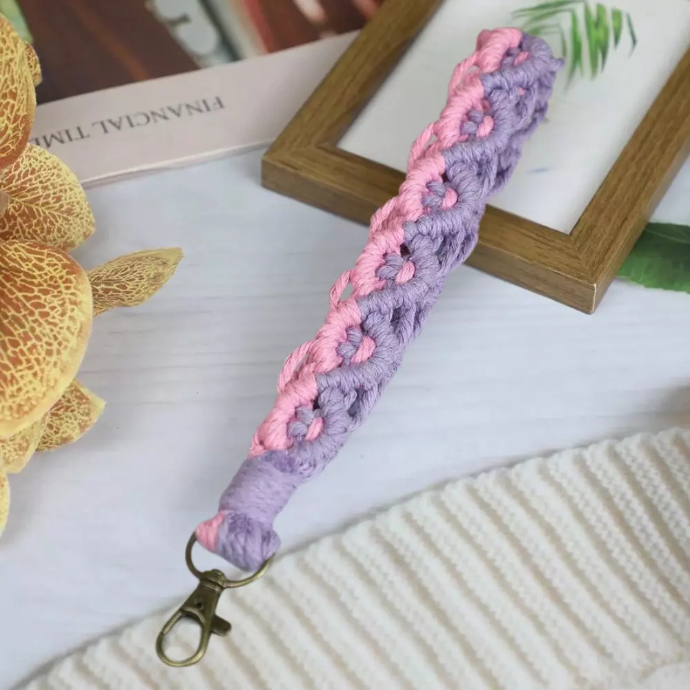 Набор макраме для рукоделия: плетёный брелок-петля на руку (22×3