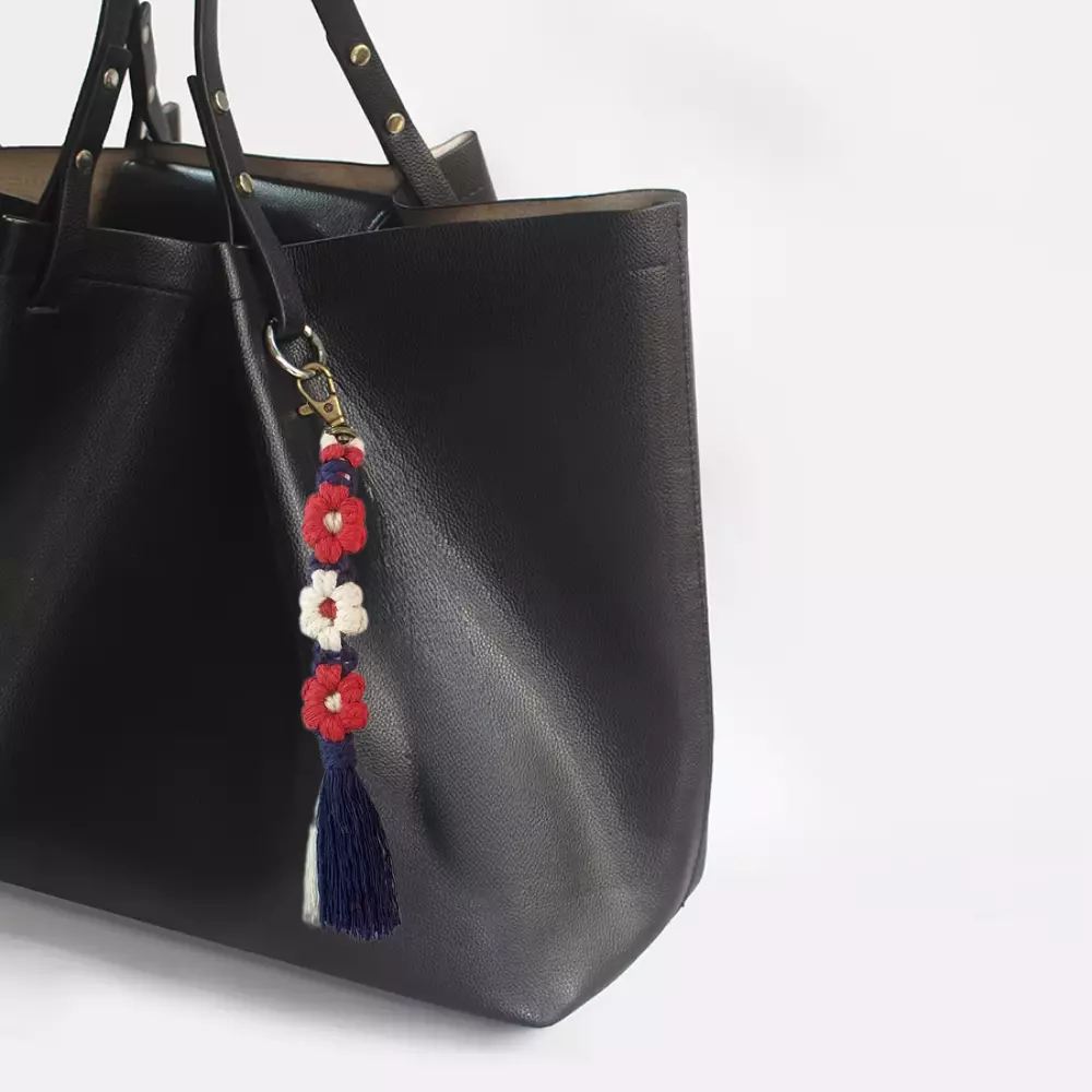 макраме, включает три цветка, сплетённых из хлопковых шнуров в