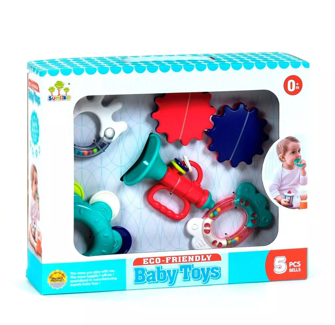 5-ти развивающих погремушек. Благодаря погремушкам малыш учится