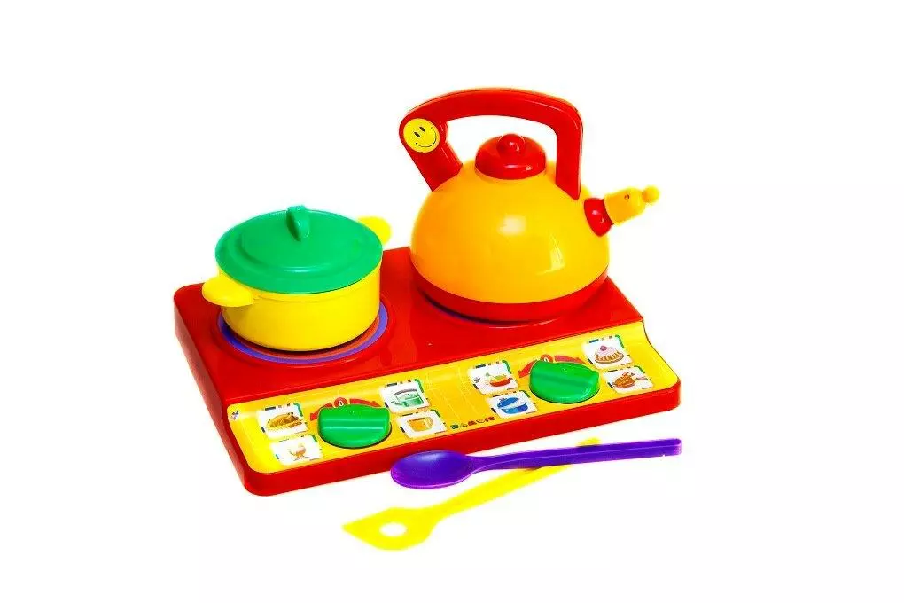 В комплект Kimi для игры входит игрушечный чайник, кастрюля, плита,