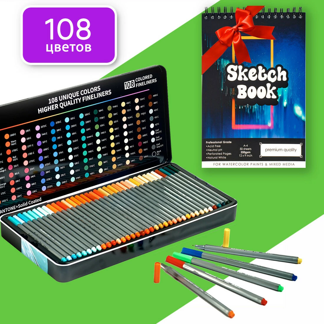 кейсе Fineliner 102 цветов 0.4 мм + Альбом для скетчинга А4 на 50