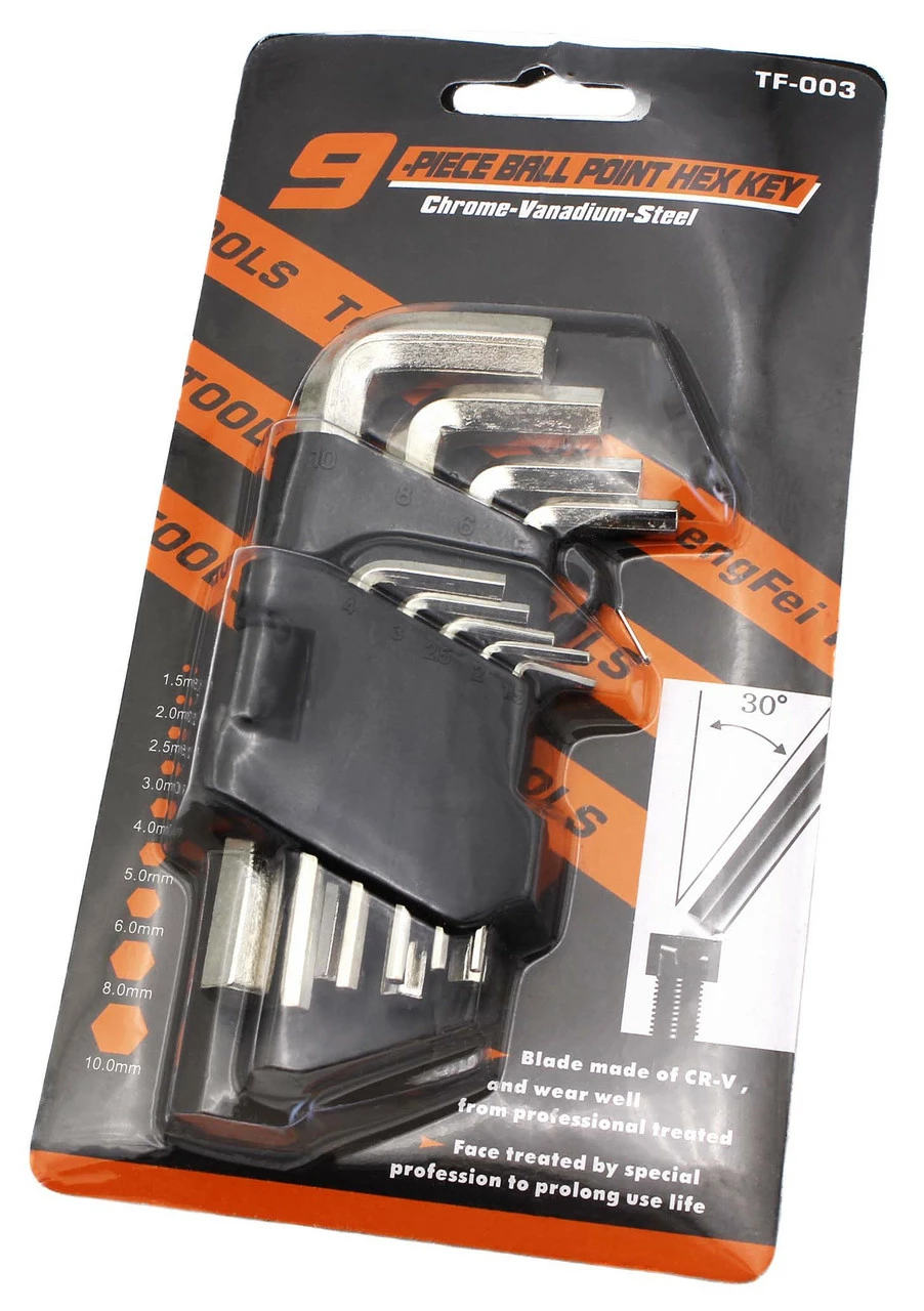 В наборе девять инструментов различного размера. Упаковка - блистер. Размеры товара 19х9.5 см.