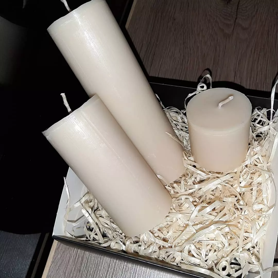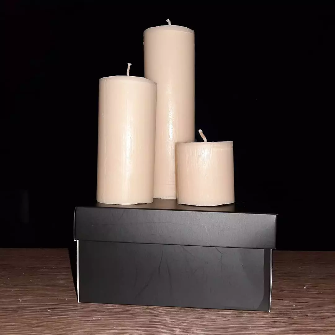 Набір із трьох свічок діаметром 5 см, висота 5, 10 і 15 см.