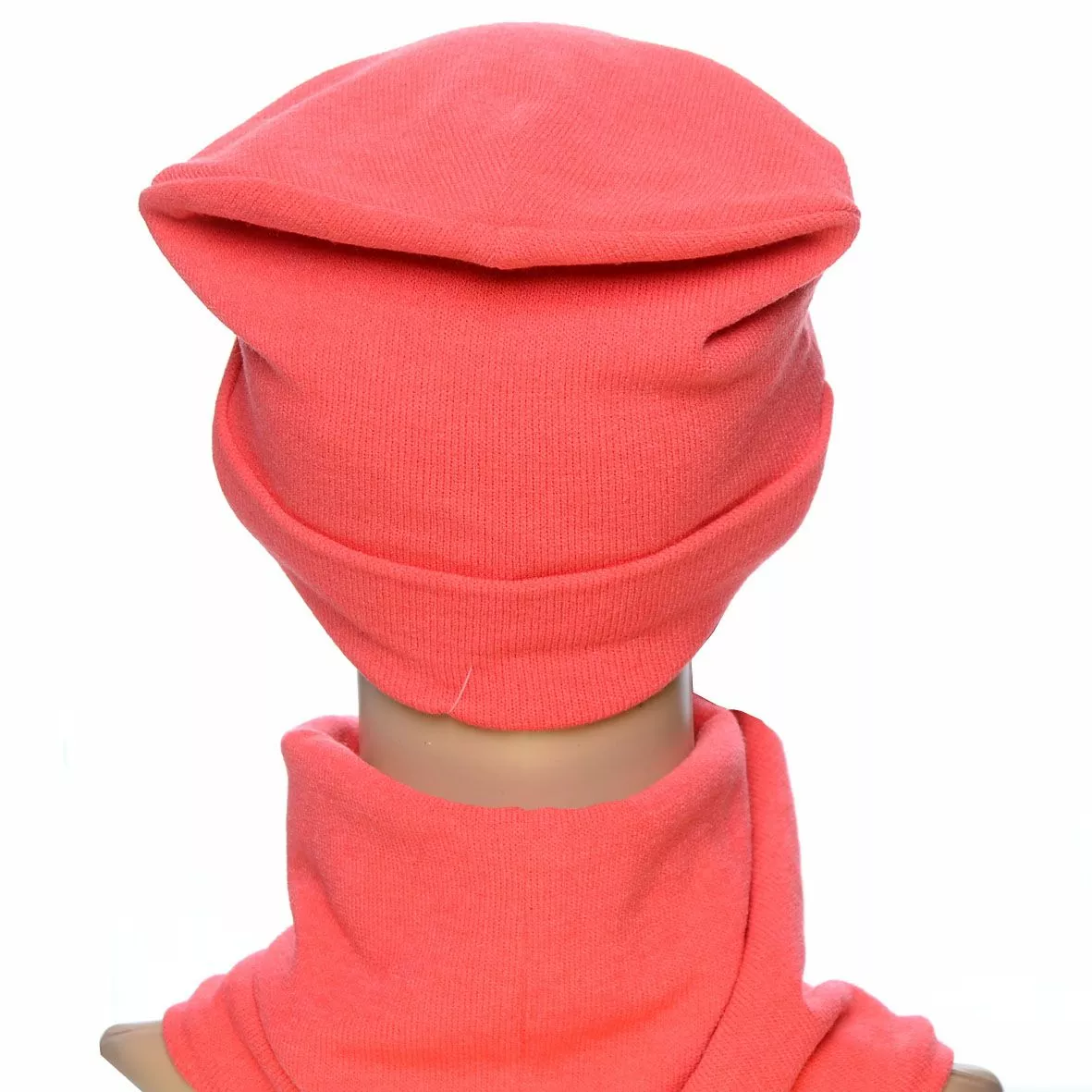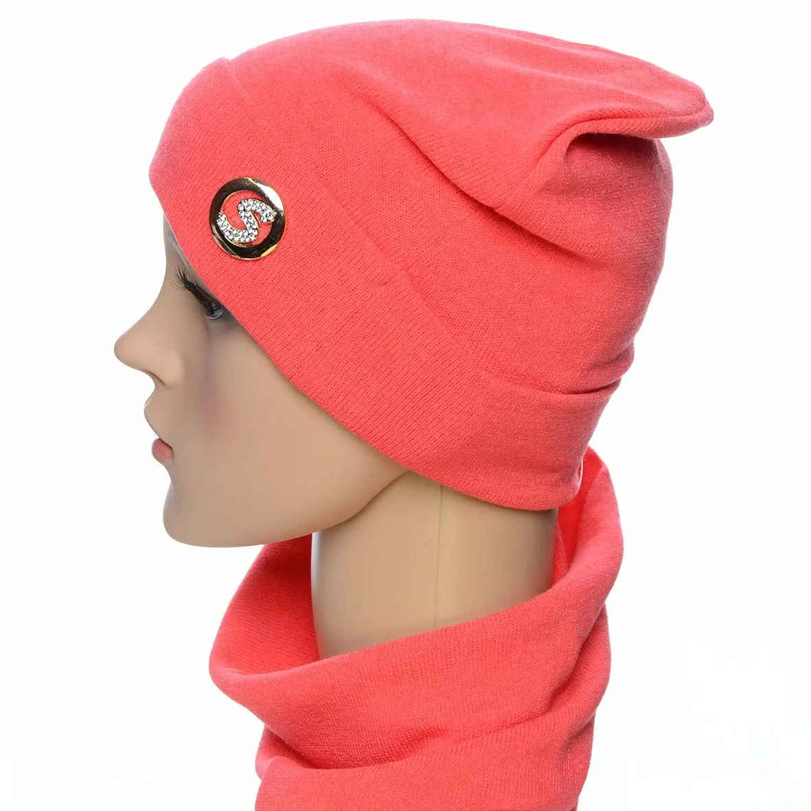 Трикотажный однотонный комплект для женщин, состоящий из шапки и