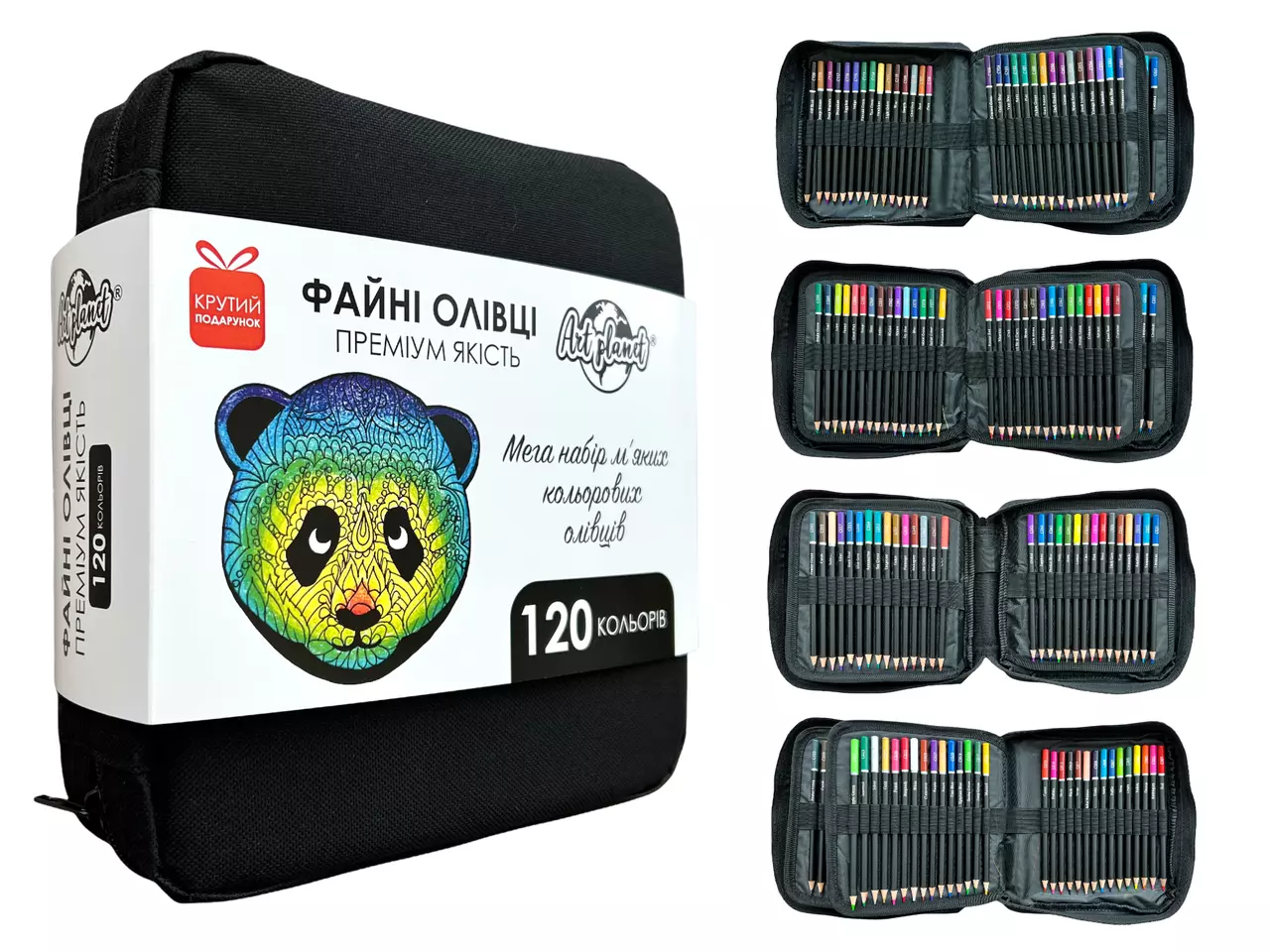 Набор цветные мягкие карандаши 120 цветов подарочный набор в нейлоновом чехле Art Planet панда