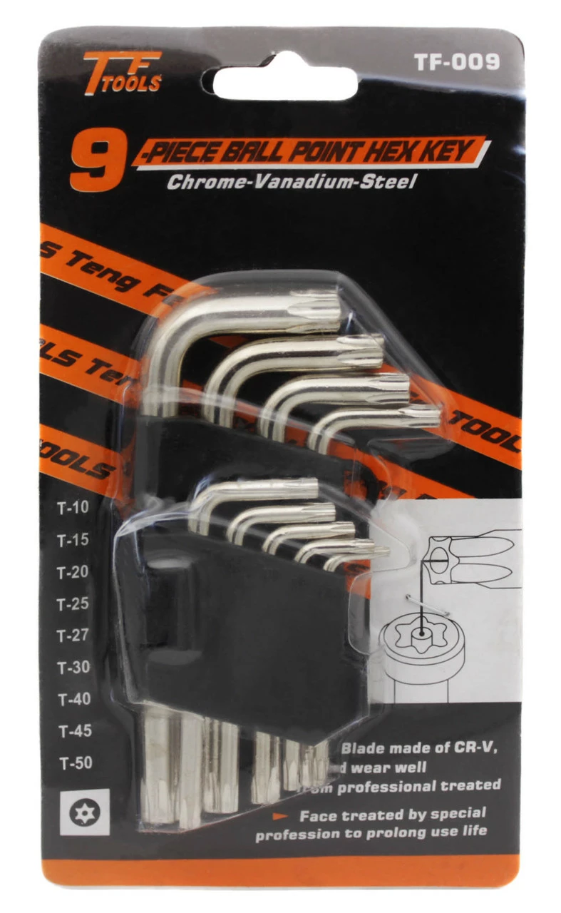 Набор инструментов ключи- звездочки, в наборе 9шт. Упаковано в блистере. Размер упаковки 20х10 см. Товар для оптовых продаж.