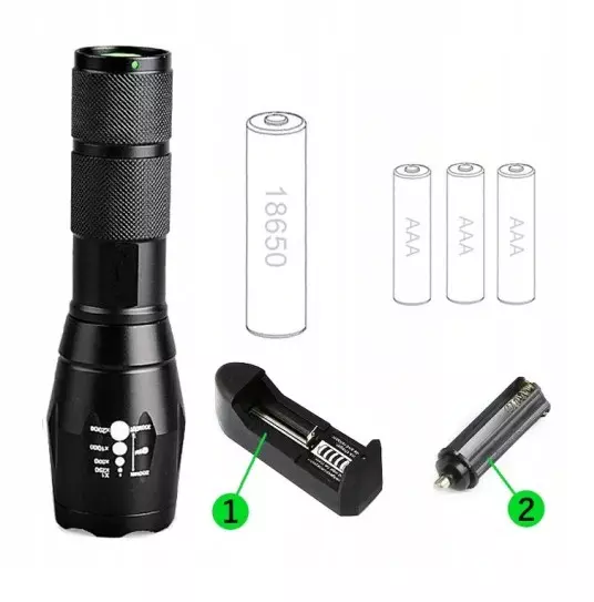 Батарейка: 1×18650 (в комплекті) / 3×AAA (не в комплекті)