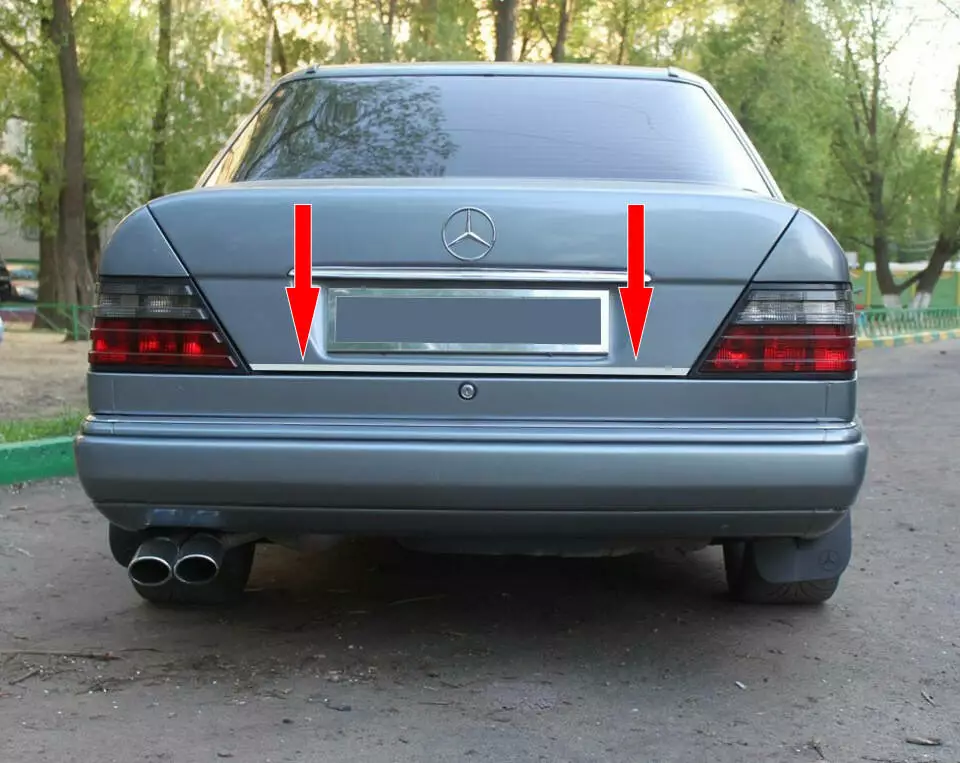Mercedes E-klass W124 Накладка на кромка багажника (нерж) Виробник: CarmosДополнительные характеристики. Категории товара: Хром накладки, Накладки на крышку багажника; Материал: Нержавеющая сталь; Тип установки: Самоклейка; Марка: Mercedes; Модель: Mercedes E-klass W124