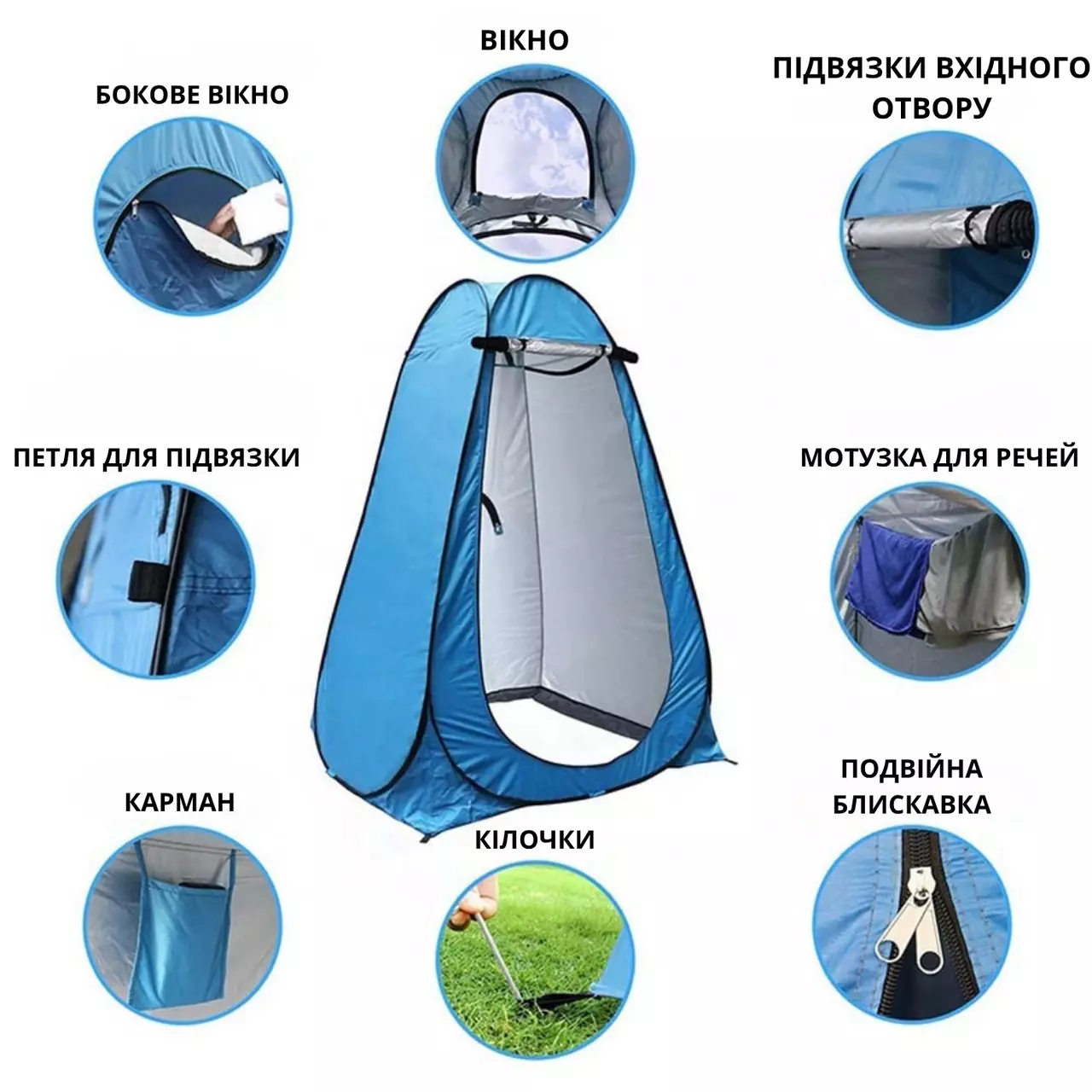 душу, переодягання або використання як туалетна кабінка на природі.