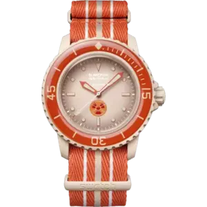 Пять моделей Blancpain × Swatch изготовлены из биокерамики – уникального запатентованного композита, на две трети состоящего из керамики, и на одну треть – из биоматериалов на основе касторового масла. Цветовая гамма совместного творения подчеркивает, что это не классические часы Blancpain. Однако, знатоки и любители брендов сразу же узнают характерные особенности знаменитых Fifty Fathoms, а также отсылки к коллекции Swatch Scuba.