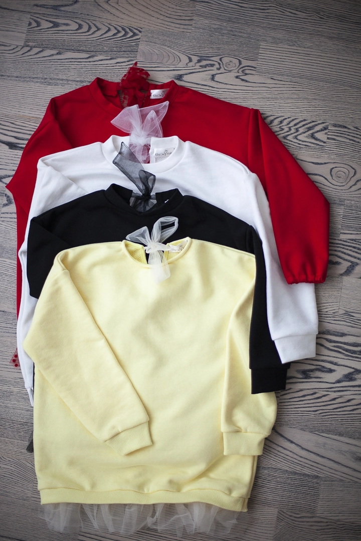 Свитшок прекрасно сочетается с кожаными лосинами и пышными юбочками из нашей колекции.