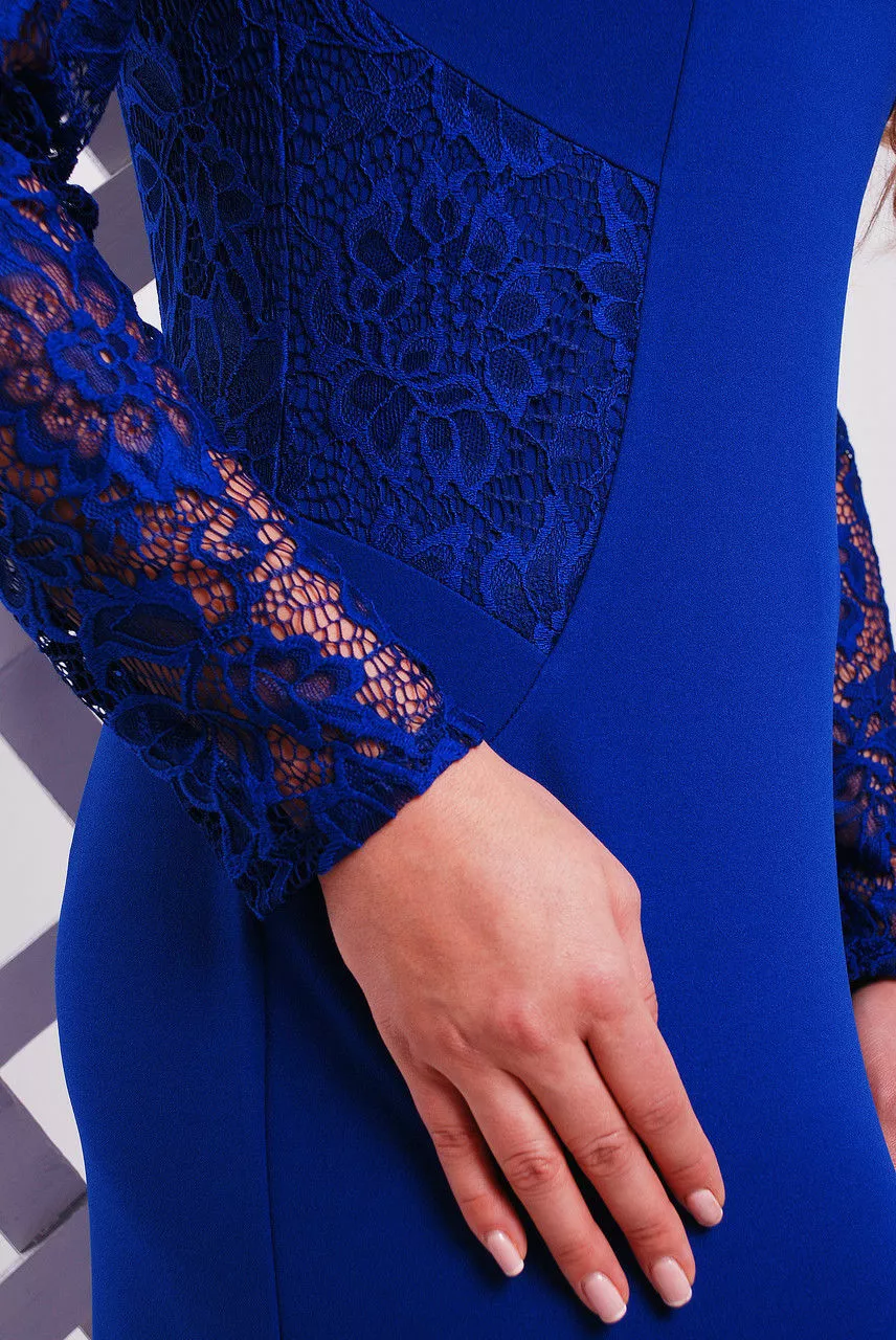 Нарядное трикотажное женское платье Адель, цвет электрик. Размеры