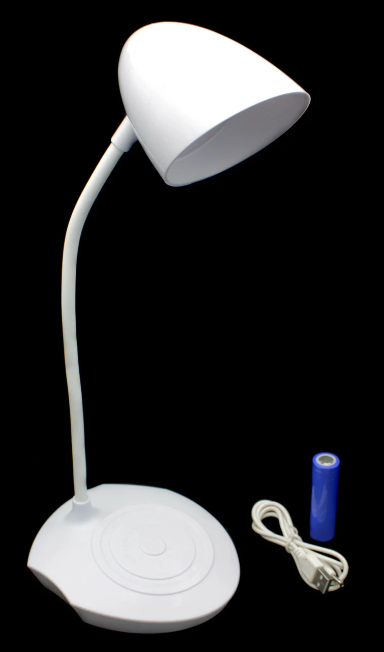 Настольная лампа 120 люменов, может работать как от 18650 аккумулятора так и от шнура USB, шнур может работать как от адаптера так и от USB порта ноутбука. Сенсорная кнопка с тремя режимами работы, минимальный, средний и максимальный режим. Так же компактно слаживаеться для удобного перемещения.
