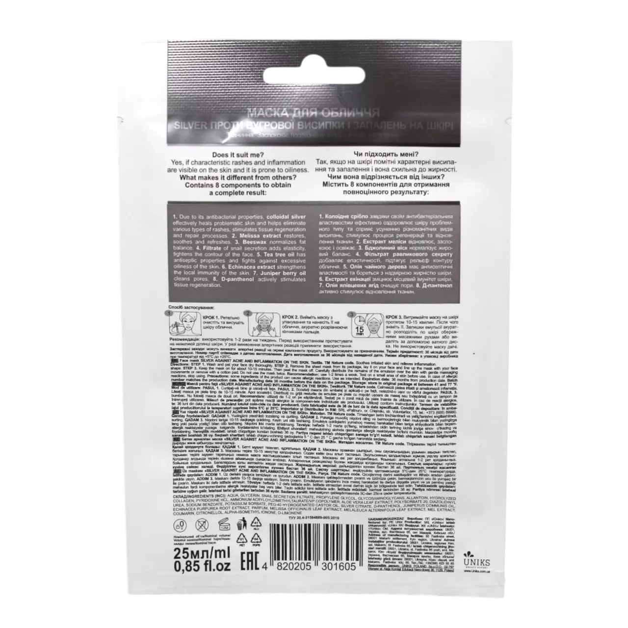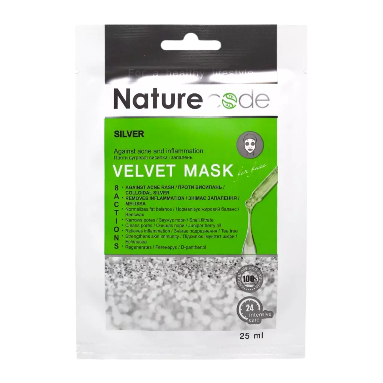 Nature Code Маска для обличчя тканинна Silver проти висипу і