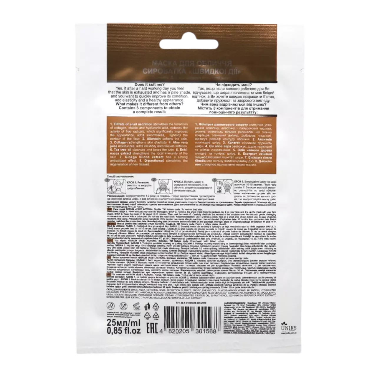 основа маски дозволяє інгредієнтам ефективно вбиратися в шкіру,