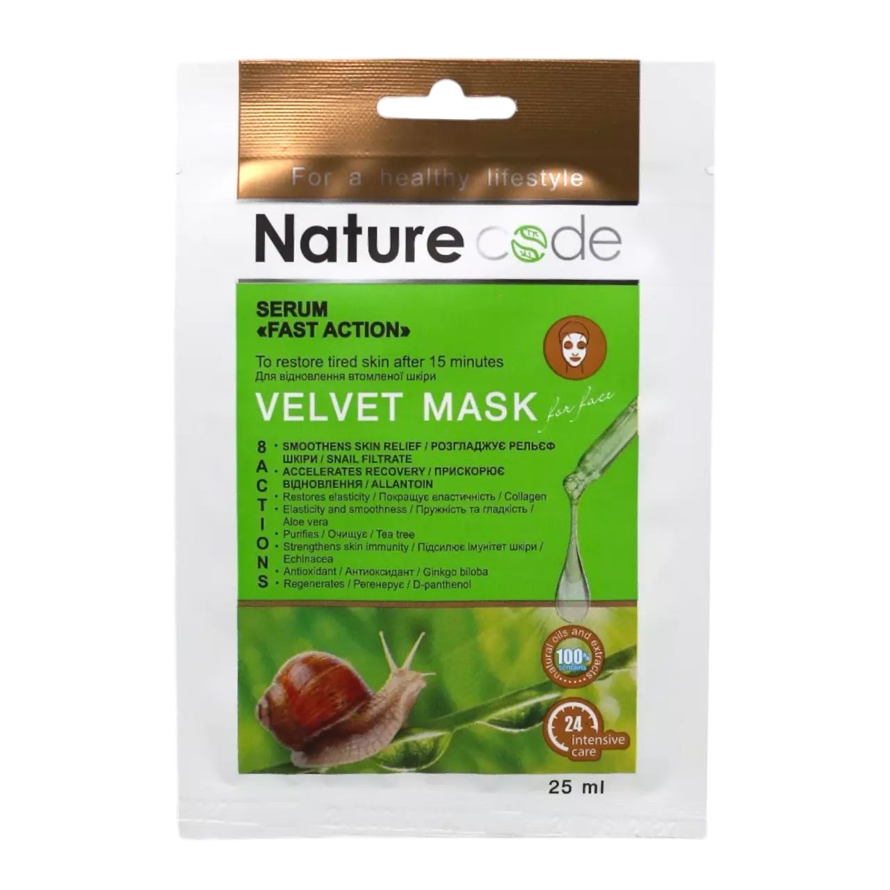 Nature Code Маска для обличчя тканинна "Сироватка швидкої дії"
