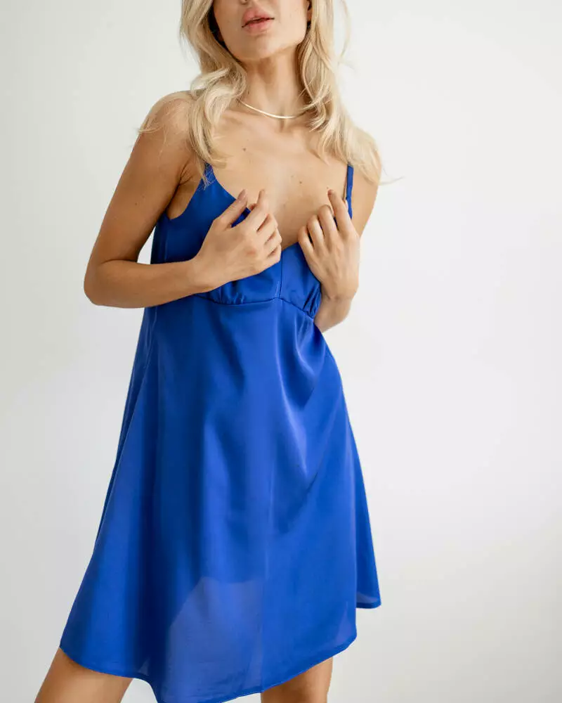 Нічна сорочка виконана з шовкової тканини Armani. Модель представлена в довжині міні, бретелі регулюються. Нічна сорочка чудово підкреслює жіночу фігуру і може поєднуватися з халатом.