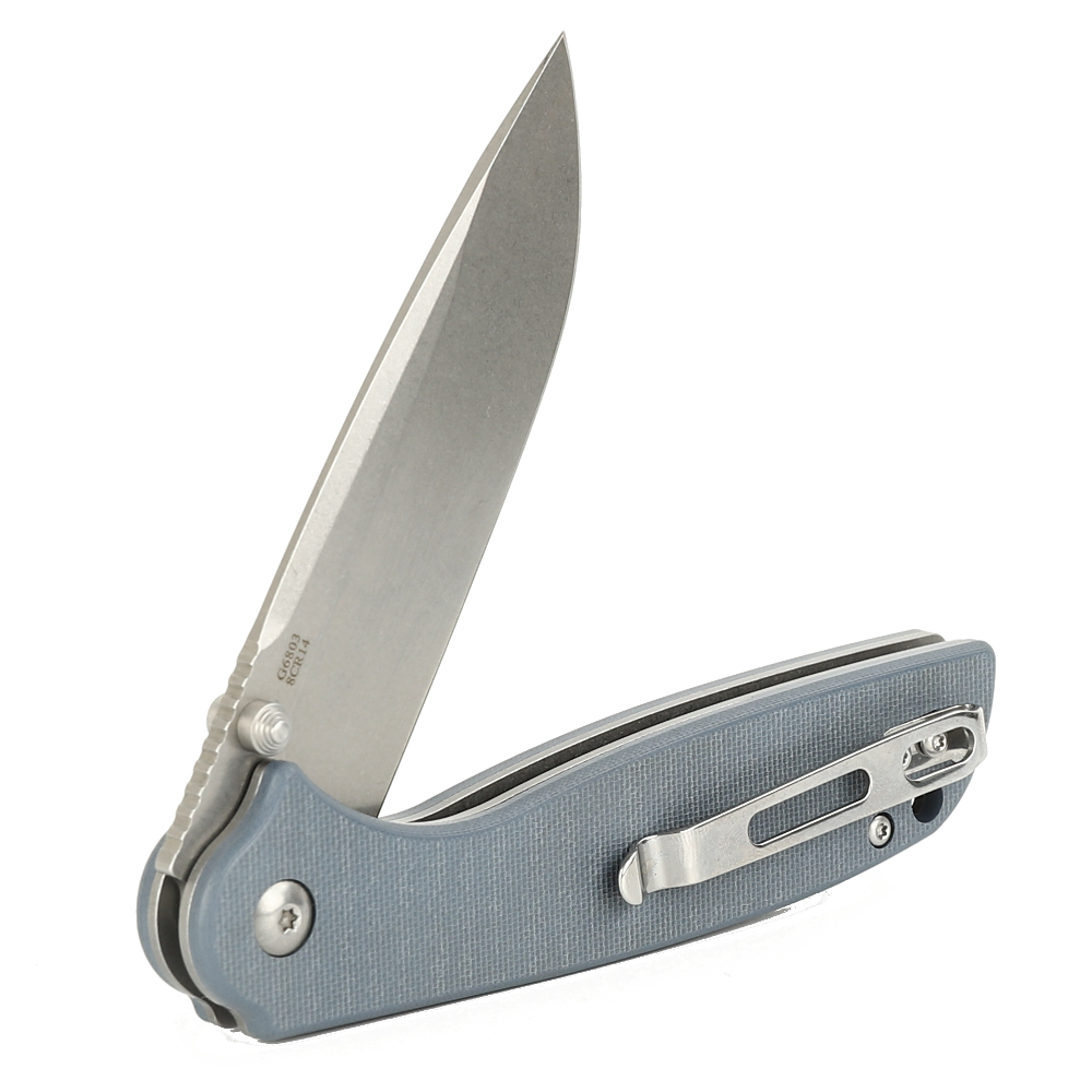 Рукоять виробу виконана зі склотекстоліту G10. Це досить міцний матеріал, і він дає комфорт при роботі з ножем, а також показує стійкість до різного роду зовнішніх факторів. Ручка ергономічної форми, зручна при захопленні. Поверхня ручки текстурована, завдяки чому ніж надійно утримується в руці при будь-яких умовах. Металева кліпса дозволяє фіксувати виріб, і носити його на кишені, на поясі або причепити до сумки. Є отвір для темляка.