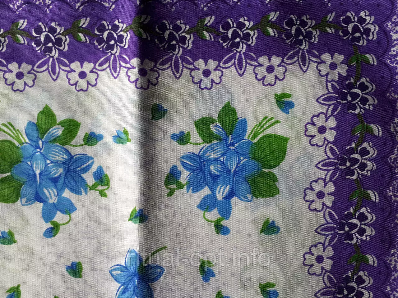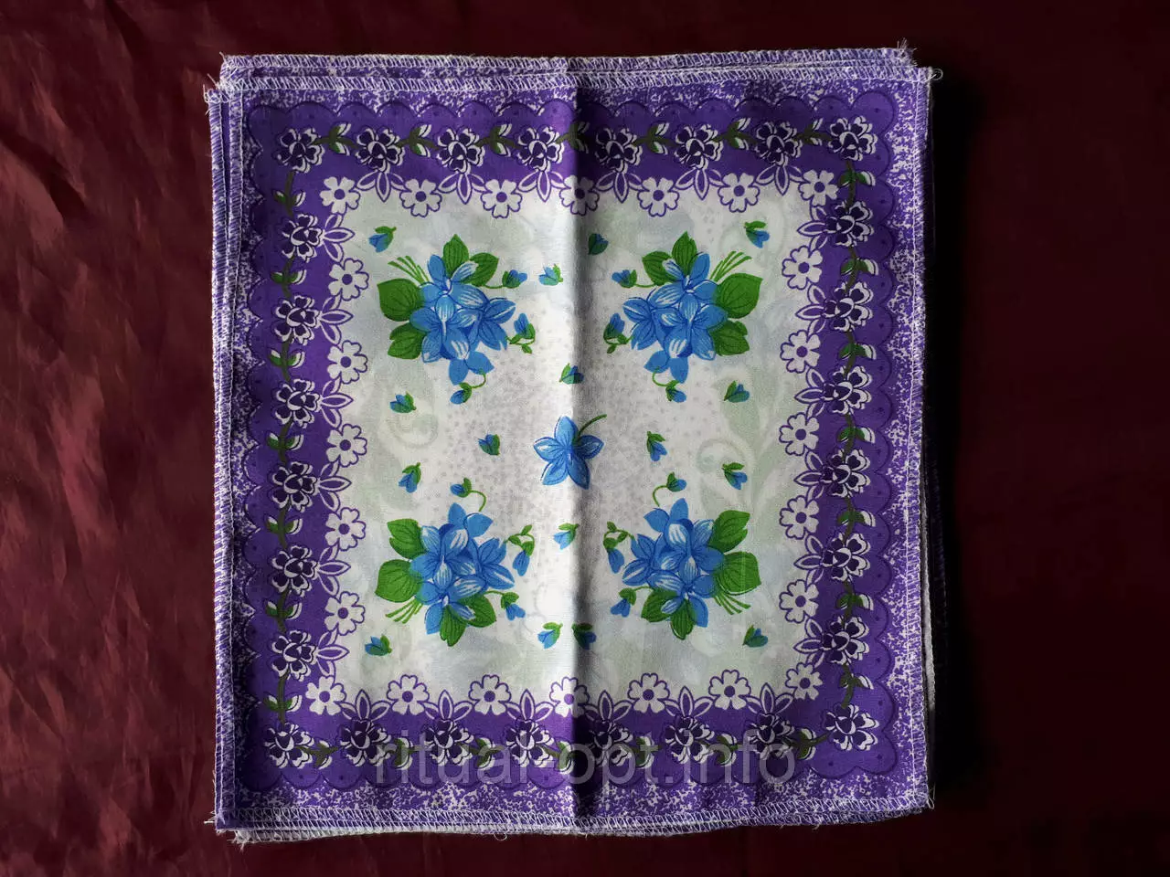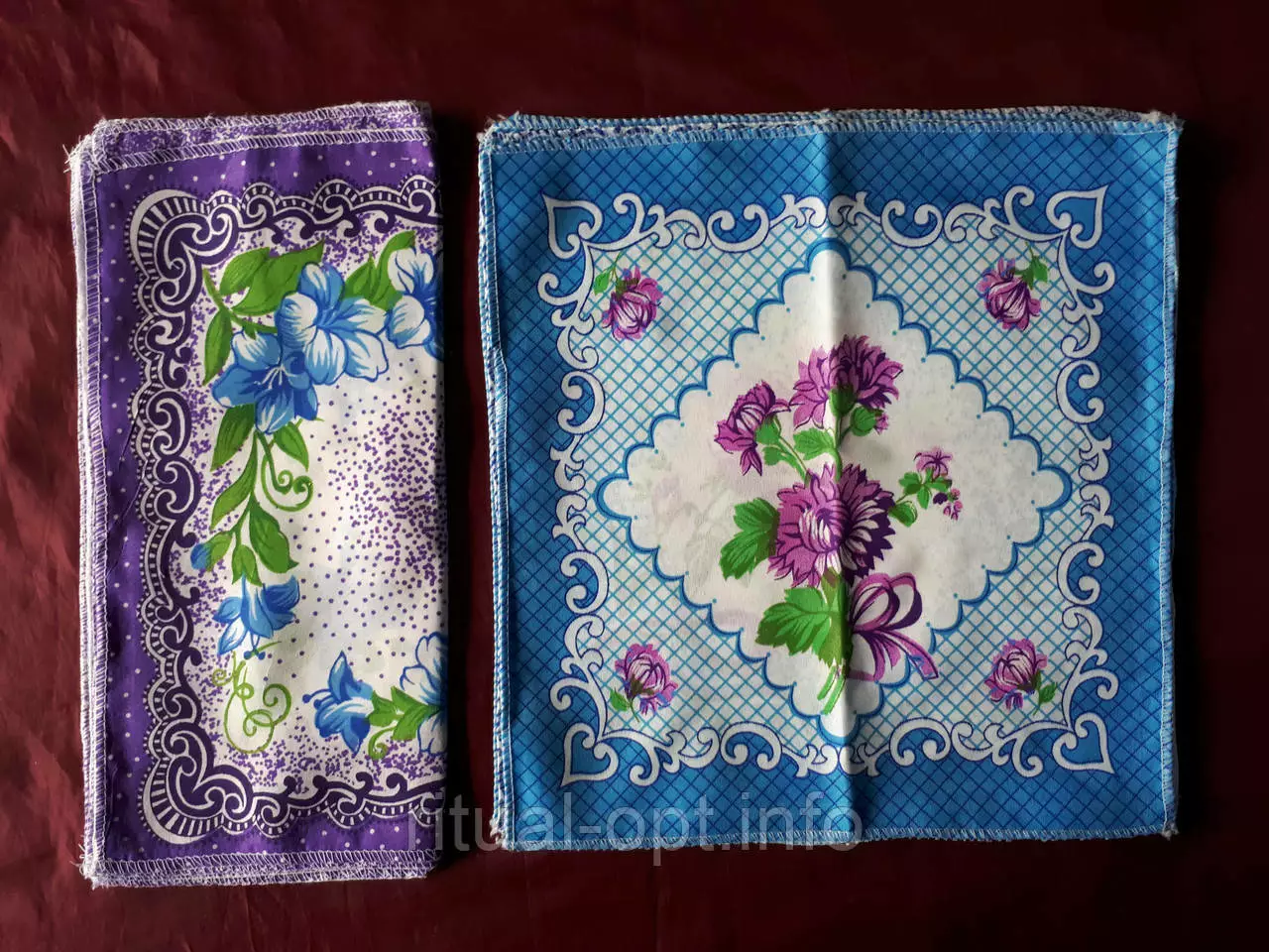 Хустка носова жіноча штучна велика.Якісний друк малюнка.По краях оверлок.Колір синій з білим,бузковий з білим.Виробник Україна.