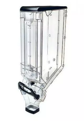 Ємність прозора кришка і ручка чорні. Кришка щільно закриває ємність. Фальшфронт створює видимість заповнення продуктом. Похиле дно подає продукт до вихідного отвору. Інтенсивність потоку регулюється спеціальним упором. Обсяг 20 л. Встановлюється за допомогою GB-Foot 150 N, XH-150 або SDA-150.