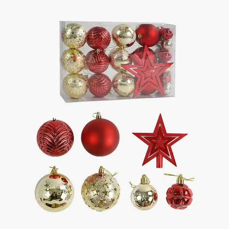 Новорічні прикраси C 67497 (32) 24 штуки, зірочка-верхівка, кульки, maх D=8, min D=4 см, у слюді
