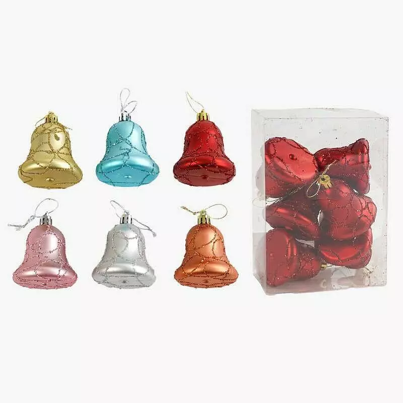 Новорічні прикраси C 67715 (120) 6 штук, дзвоники, висота 6 см, у слюді, ВИДАЄТЬСЯ ТІЛЬКИ МІКС ВИДІВ