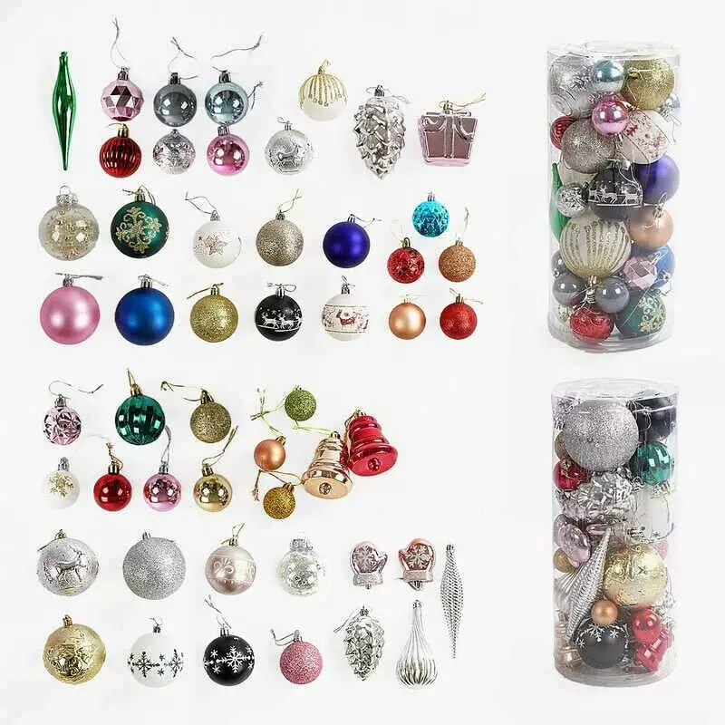 Новорічні прикраси C 67966 (30) 2 види, 24 штуки, кульки, D=6 см, в слюді