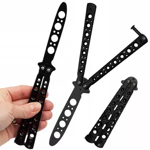 Тренировочный нож-бабочка (балисонг) — идеальный выбор для безопасного обучения флиппингу и трюкам. Не имеет заточки, что исключает риск травм при использовании. Рукоятка из лёгкого алюминия с отверстиями обеспечивает хороший баланс и удобство в обращении.