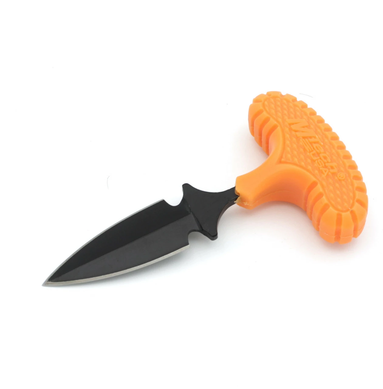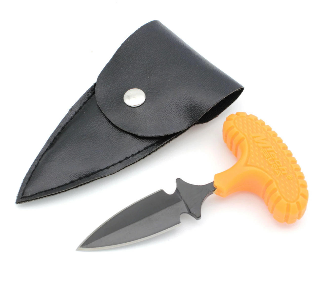 Нож тычковый в чехле. Ручка деревянная. Заточка ножа двухсторонняя. Размеры изделия 8.7 см и ширина ручки 6 см, ширина лезвия 2.8 см. Хорошая вещь для охотников.