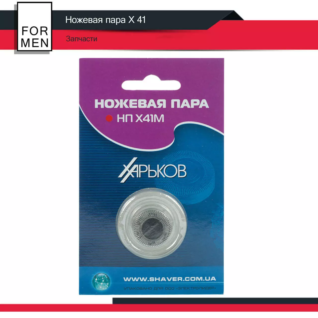 Ножева пара НП Х41М для електробритви «Харків 36,40,41,41М,44, являє собою готовий до встановлення в електробритву комплект нерухомого та рухомого ножів, ретельно притертих один до одного.