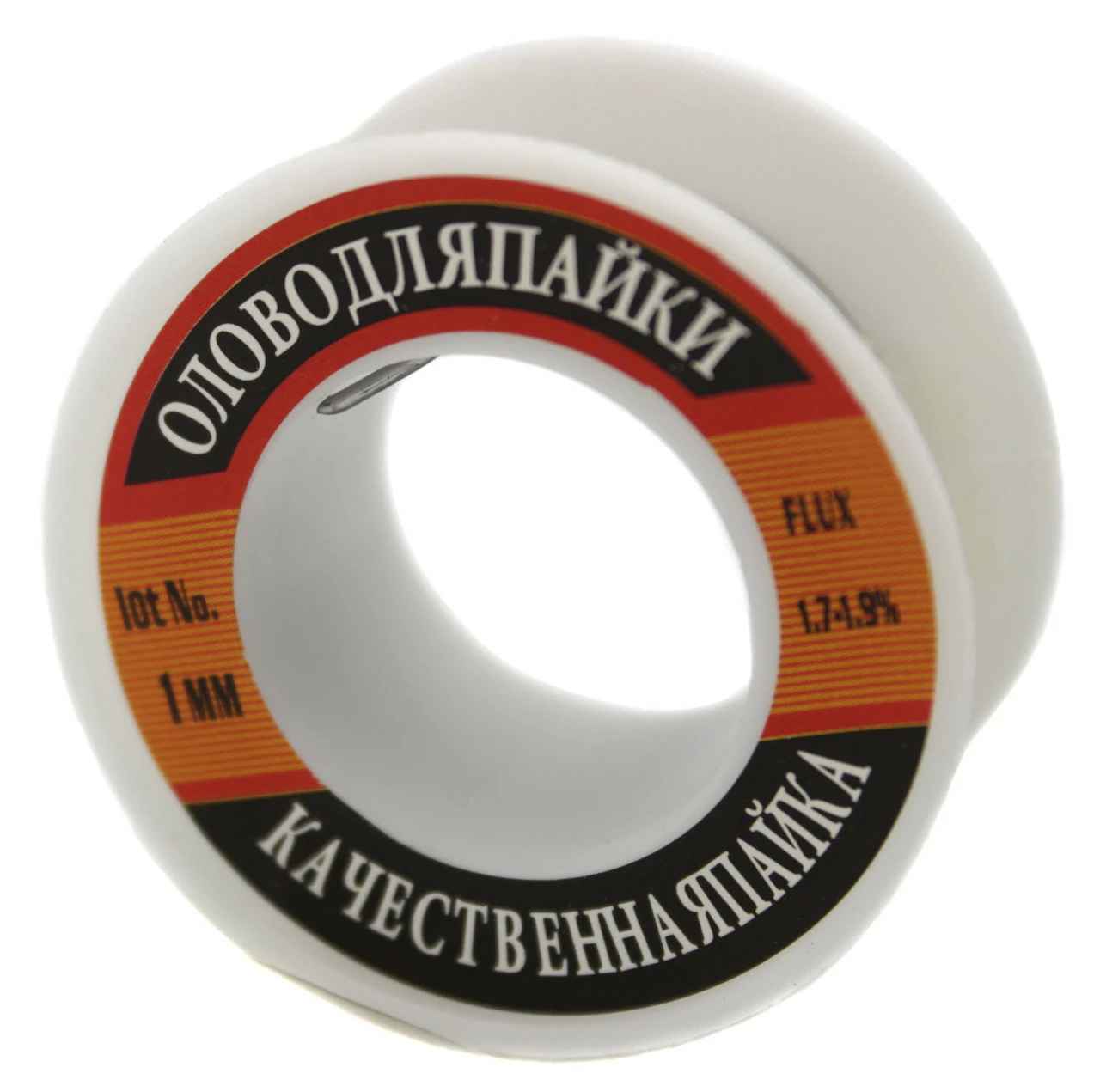 Припой, Олово для пайки малая, диаметр - 1 мм, флюс 1.7-1.9%.