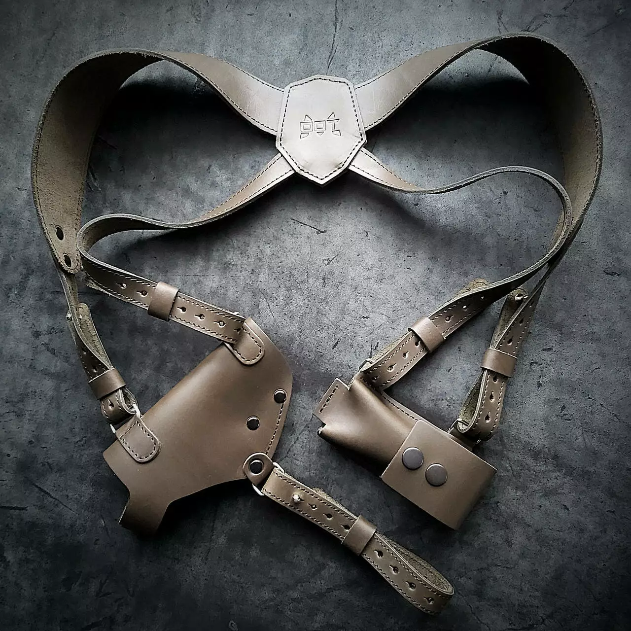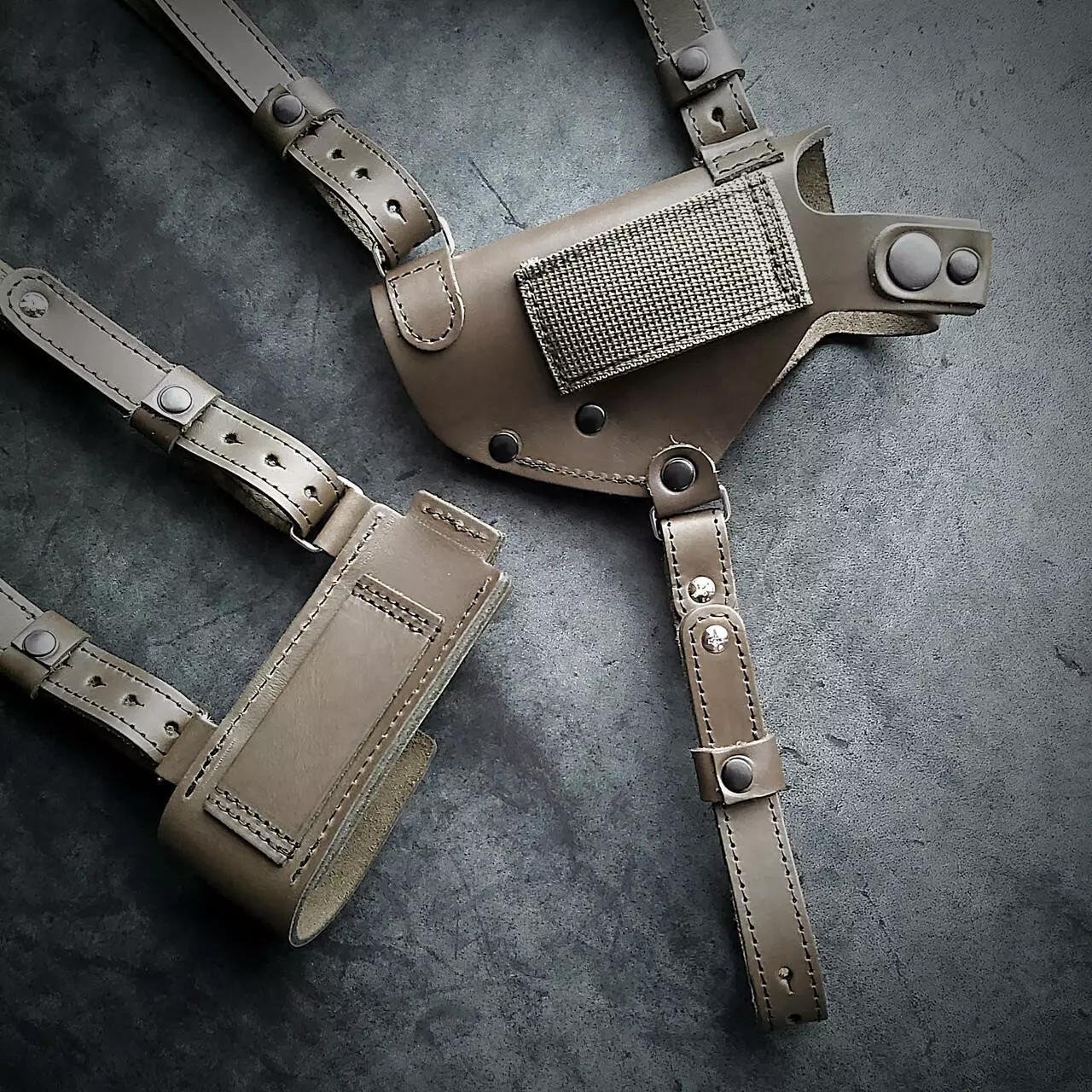 • Кобура ліворуч, паучер праворуч. Кобура і паучер знімаються з наплічної системи і можна носити на ремені шириною 5 см.