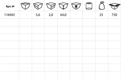 линейные размеры ,мм : х 560, объем -нет; кол-во в упаковке: 15 шт.