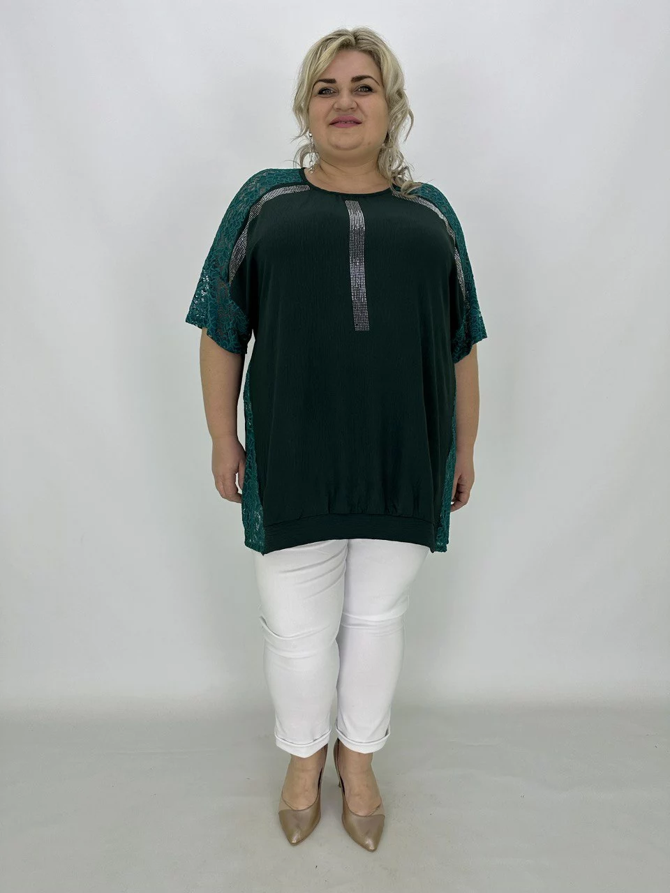 Туніка з легкої ніжної тканини-американський креп з невеликою розтяжністю.