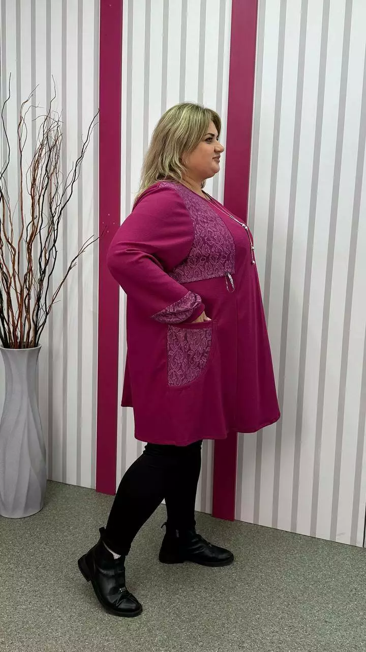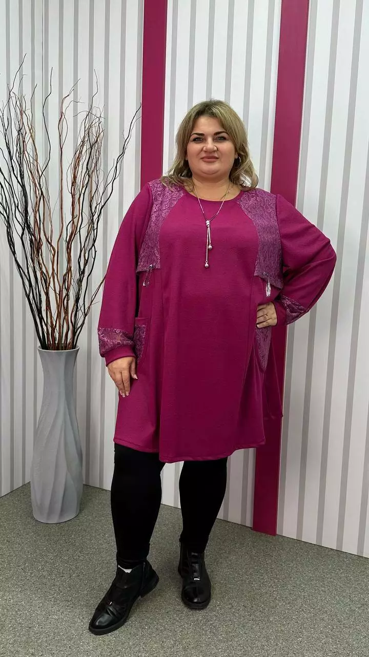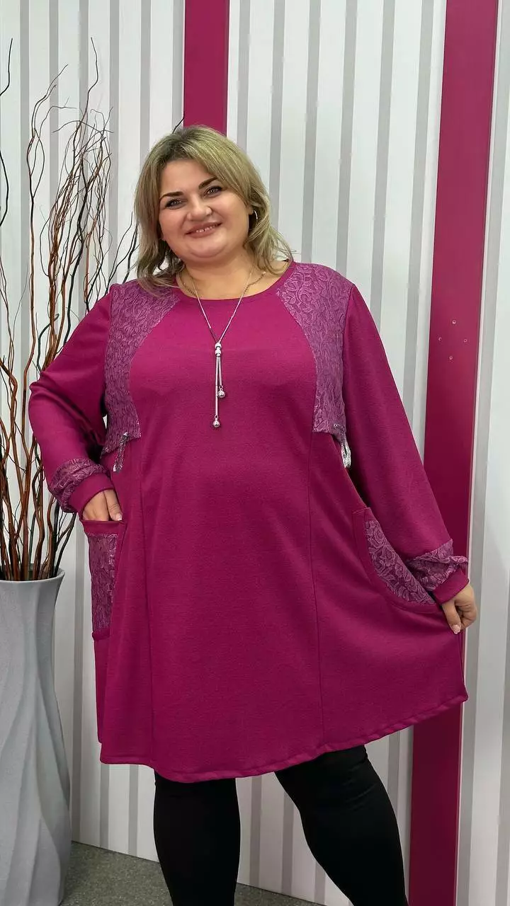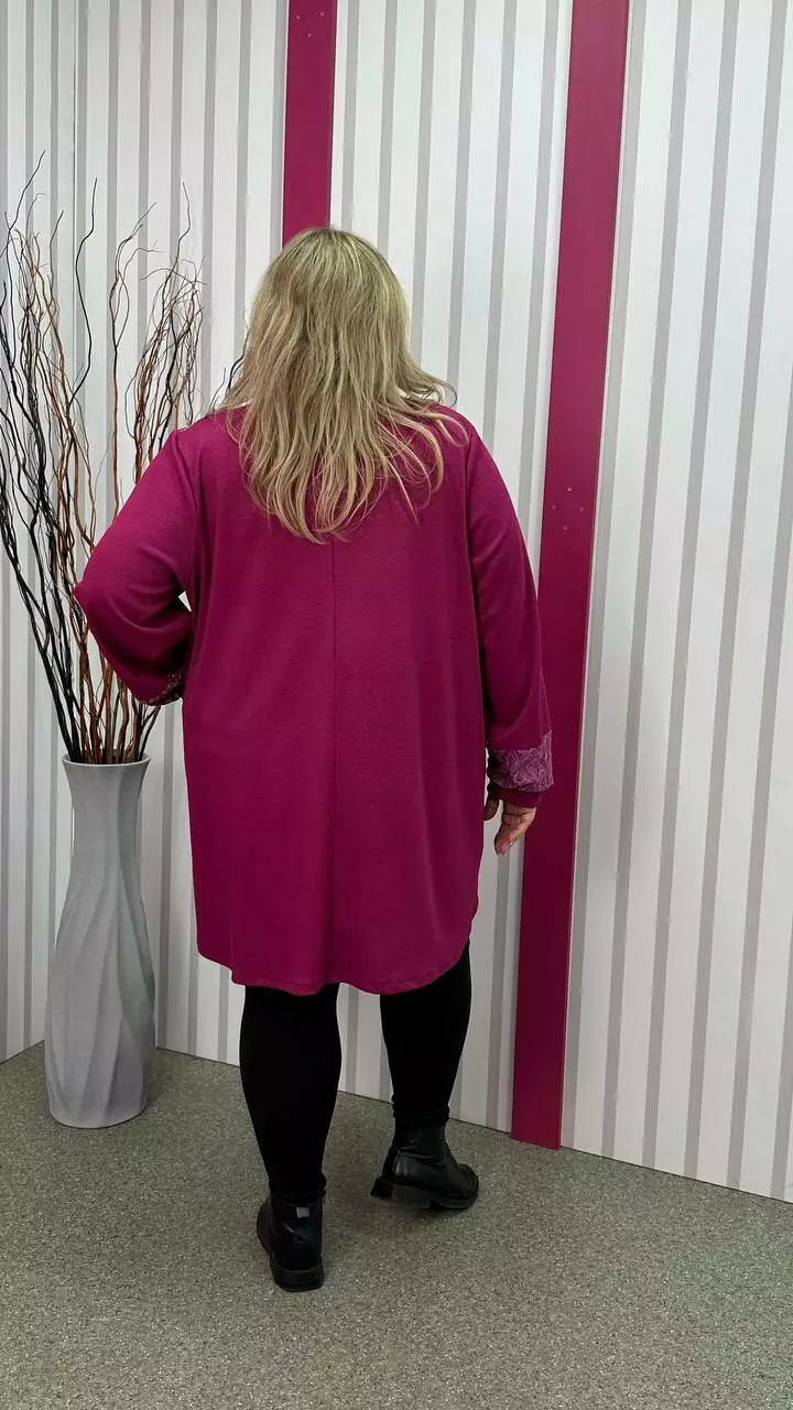 Ошатна туника комбінована гіпюром, рукав довгий. горловина кругла. дві кишені