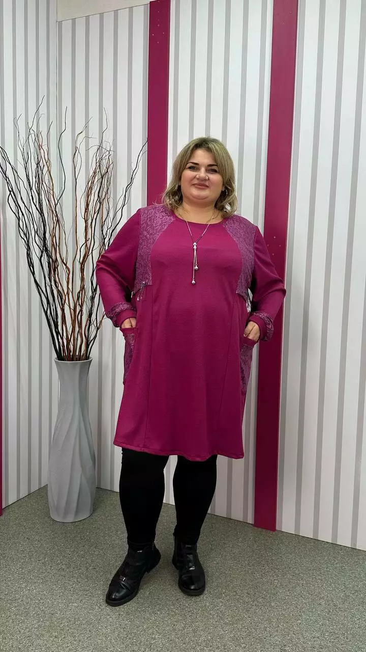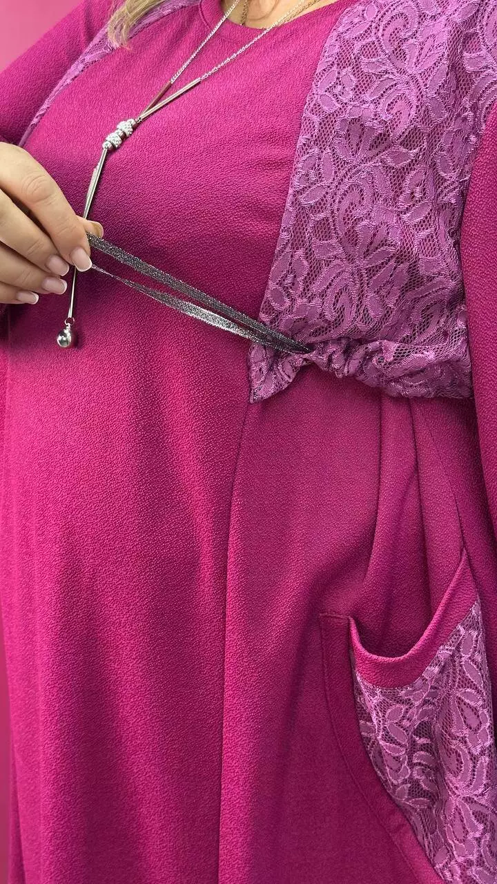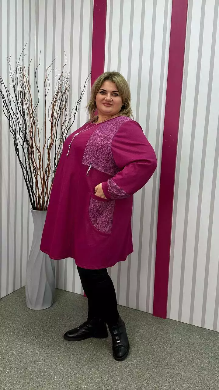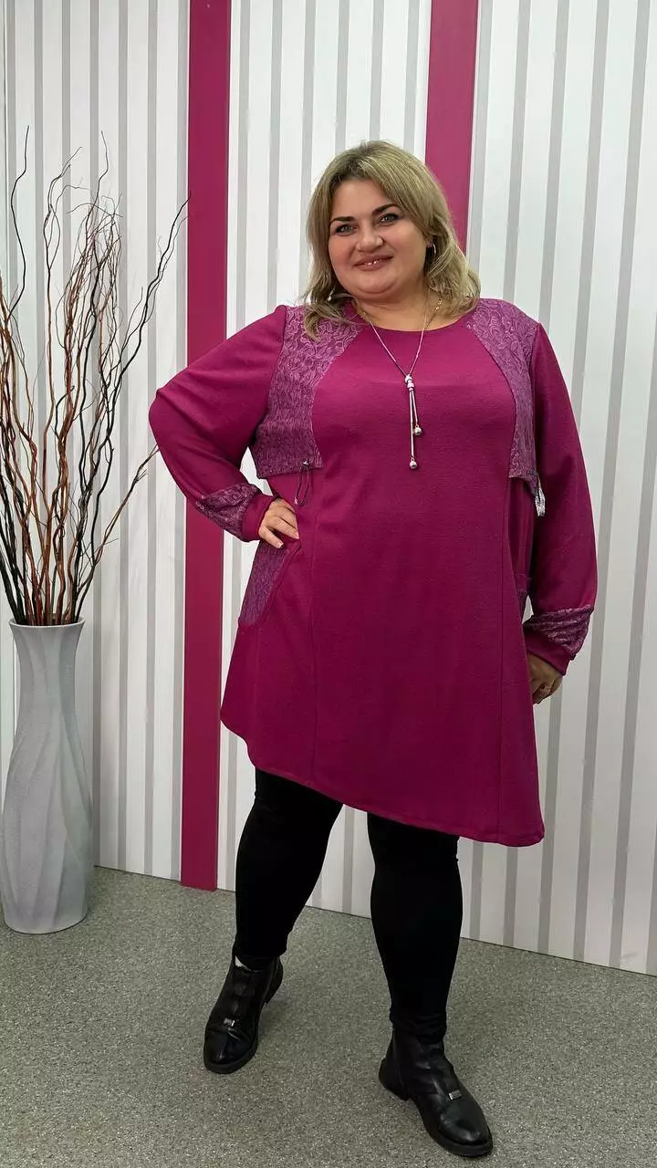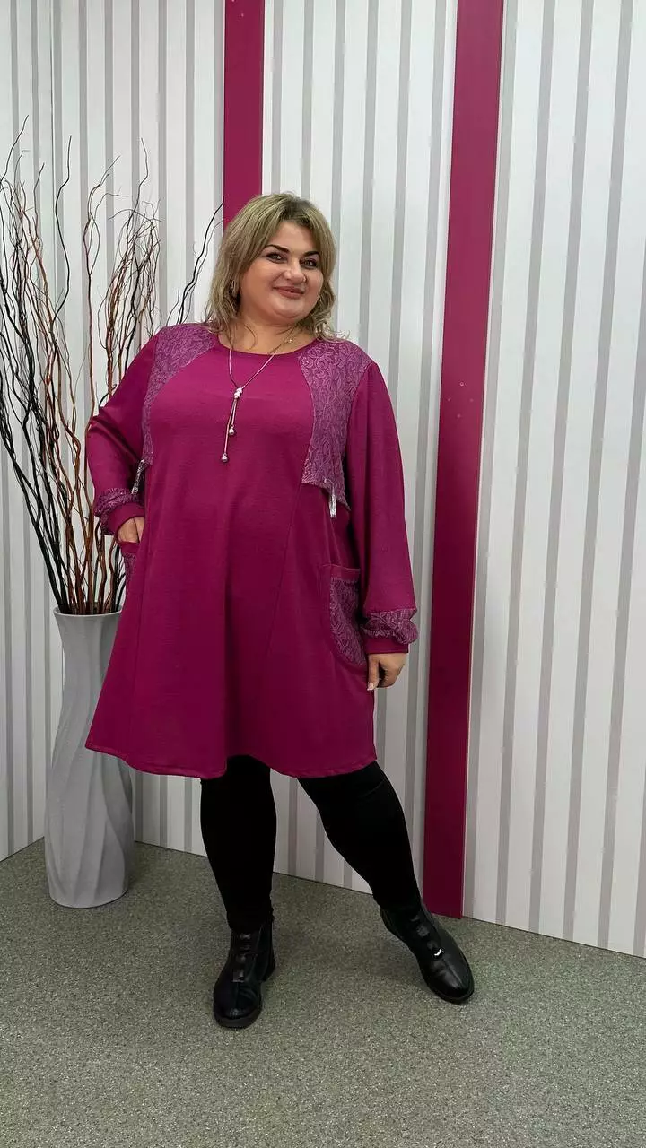 Ошатна туника комбінована гіпюром, рукав довгий. горловина кругла. дві кишені